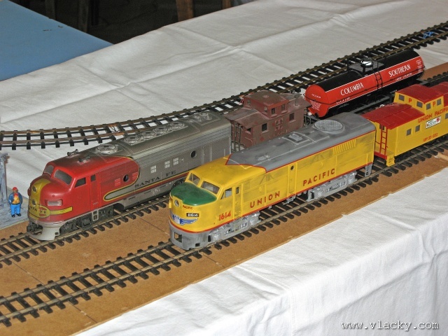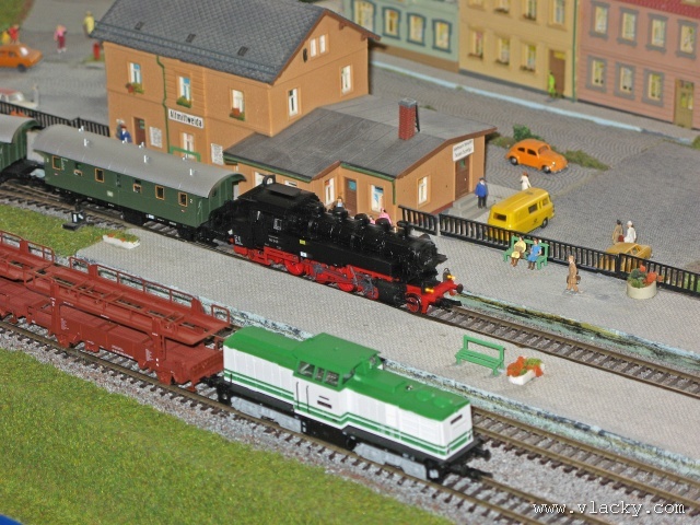 Do Kulturního domu Holice jsem dorazil krátce po 11. hodině, kdy zrovna probíhalo vyhlášení výsledků fotografické soutěže. S ohledem na omezený čas jsem hned zamířil na výstavu. Hned bylo jasné, že se Spolek přátel železničního modelářství a železnice snaží. Na výstavách většinou prezentují množství menších kolejišť než jedno velké klubové. To je pochopitelně atraktivní zvláště pro malé návštěvníky. Z dalších pravidelných akcí uvedu aspoň výstavu ke Dni železnice v roce 2006 v Pardubicích a o několik dní dříve pořádanou výstavu v ZŠ Rokytnice v Orlických horách při příležitosti 100 let železnice Doudleby nad Orlicí - Rokytnice v Orlických horách. Prezentovaná kolejiště byla různých úrovní zpracování, všech běžných velikostí a ovládaná většinou analogově. U firemního kolejiště Tillig se v plně automatickém provozu proháněly po ovále dvě soupravy. A hned u vedlejšího kolejiště H0 bylo možné si vyzkoušet digitální ovládání. Ani různé drobné havárie nebyly výjimkou, jak u kolejišť analogových, tak digitálního. Z ostatního bych zmínil pěkně zpracovanou diorámu lokomotivního depa. Škoda, že sestava modulů depa nebyla větší, i tak se mi vystavovaný výsek velmi líbil. Aniž bych zkoumal depo podrobněji, bylo hned jasné, že ztvárňuje začátek III. epochy, zlatou éru parního provozu se vším tím nepořádkem okolo a viditelnými pozůstatky z války. Asi největší plochu zabírala ukázka modelů ve velikosti LGB. Hned na vedlejším stole na monitoru byly promítány ukázky ze segmentového kolejiště Trainmania a ve vedlejším sále byly promítány dokumentární filmy o železnici. Ve vitrinách bylo možné slédnout ukázky produkce menších i větších výrobců ve všech modelových velikostech. A před kulturním domem nakonec jezdil i skutečný parní vlak Sičovy drobné železnice, pouze poněkud zmenšený v měřítku 1:8. Další informační zdroje: