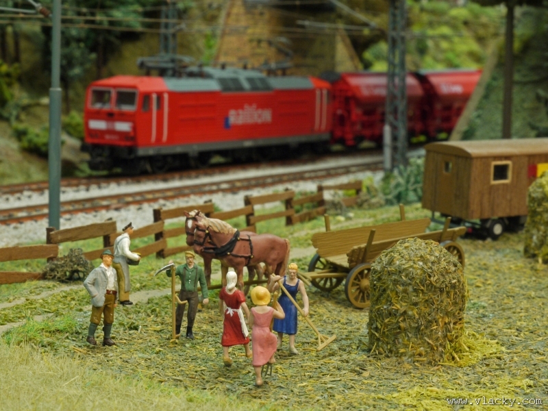 Skutečně začátkem roku 2009 byl oznámen termín foto-videokace na klubových stránkách KŽM Přerov. Začátkem roku bývá všeobecně volněji, většina klubů si své pravidelné výstavy plánuje v předvánočním období. Tentokrát měla být foto-vieokace časově rozdělena na dvě oddělené části. V rámci jednoho dne tak měla proběhnout samostatně fotoakce a samostatně videoakce. Je to celkem pochopitelné, protože požadavky na focení jsou většinou protichůdné s požadavky na natáčení. Týden před plánovaným termínem jsem byl mailem ubezpečen, že foto-videokace proběhne, i když počet přihlášených účastníků byl malý. O to více jsem se mohl těšit na exkluzivní záběry. Po deváté hodině jsem dorazil do klubu, kde již bylo vše připraveno jako ve filmařském studiu. K dispozici byl nachystaný celý štáb členů klubu, doplňková osvětlovací technika a modré pozadí, které bylo možné použít v případě záběrů, které by zabíraly i prostor mimo kolejiště. V provozu ten den byly většinou soupravy ze IV. epochy. Na hlavní dvojkolejné trati jsme si potom mohli vybrat z množství souprav IV. i V. epochy, které byly připraveny ve skrytých nádražích. Dával jsem přednost jen několika málo soupravám, které jsem natáčel při jízdách na dvojkolejné trati z mnoha pohledů, které jsem následně mohl sestříhat do obsahově kompaktnějších klipu. Při focení jsem se snažil zachytit spíše detaily na kolejišti, které kolejiště celkově oživují a zpestřují. Např. bych zmínil hnízdo čápů na budově pivovaru "Krestan", fotograf u trati, který kempuje se svým Trabantem nedaleko na louce, funkční drtič kamene, který plnil přistavené vozy na vlečce. Sobotní poklid narušoval zvuk pily z nedaleké zahrádky. V depu stanice Kamenice pózovala filmařům parní lokomotiva 354.121. Soukromí zemědelci zatím využívali slunečné počasí ke sklizni a sušení sena na loukách podél hlavní dvojkolejné trati, zatímco v nedalekém kempu si užívali dovolenkáři koupání a sportovního vyžití. A když nic jiného, tak ti starší se aspoň vyhřívali na zápraží. Díky malému počtu účastníků jsme neměli problém se dohodnout a podle možností jsem fotil nebo natáčel. Navíc jsme si mohli pořídit záběry ze všech možných i nemožných úhlů nejen z prostor před kolejištěm, který bývá vyhrazen návštěvníkům výstav, ale i z druhé strany. Přesto můj plánovaný čas rychle utekl a stejně jako minule, ani teď jsem zdaleka nestihl zachytiti všechny zajímavé detaily. Takže zase příště... Další informační zdroje: