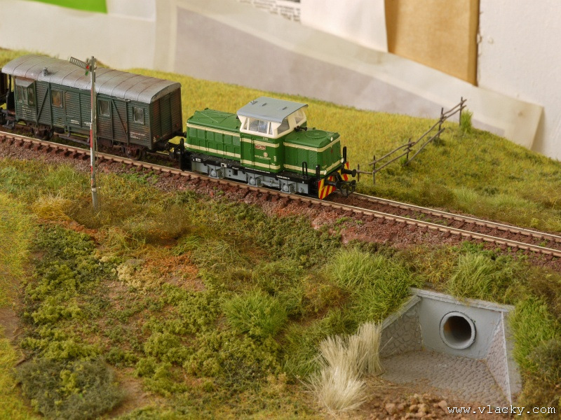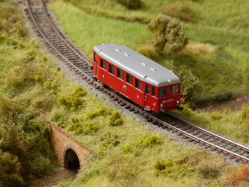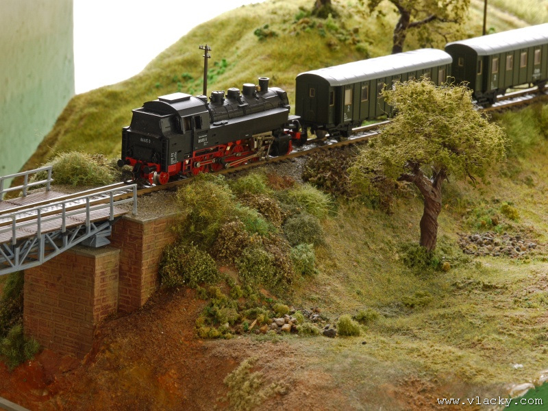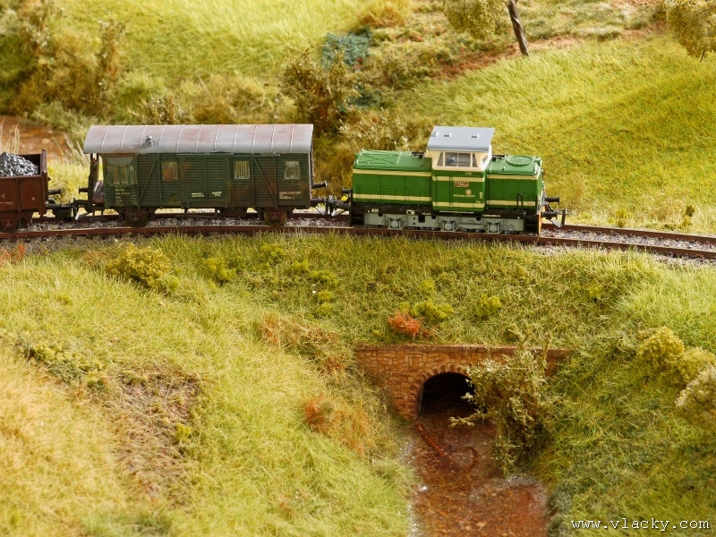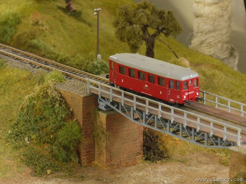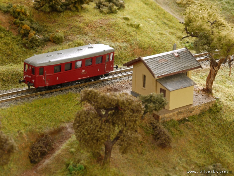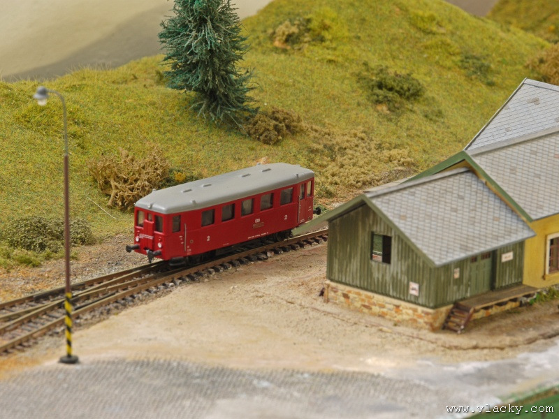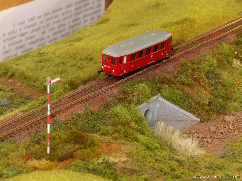 Brněnský klub provozuje ve svých rozlehlých prostorách velké stabilní kolejiště v modelové velikosti H0. Toto kolejiště prochází velkou rekonstrukcí od roku 2004, kdy se klub stěhoval ze svého původního působiště z adresy Bratislavská 58 do svých stávajících prostor v areálu Alfa Properties. Původní kolejiště bylo tehdy kvůli stěhování rozřezáno a některé části byly následně využity při sestavování nového. Nové prostory klub náležitě využil a kolejiště H0 expandovalo. Volitelným rozšířením velkého stabilního kolejiště v modelové velikosti H0 jsou moduly H0 s rozhraním Fremo. Jednokolejná trať sestavená z modulů H0 je na stabilní kolejiště napojena v jeho levé části. Při výstavě tak soupravy vlaků nemusely pouze kroužit po oválech velkého kolejiště, ale mohly projíždět po modulech jednokolejnou tratí do koncové stanice. Také počet modulů v modelové velikosti TT se utěšeně rozrůstá. Dříve jsem na výstavách viděl jen část trati z poskládaných modulů. Při stavbě modulů se modeláři inspirovali tratí Čejč - Ždánice, která je dnes již bez pravidelné osobní dopravy. V roce 2007 byl dokončen další modul koncové stanice Ždánice, takže na pravidelné podzimní výstavě toho roku již bylo na co koukat. Při stavbě modulů se však modeláři inspirovali i jinými náměty, např. výhybnou Borač nebo zastávkou s nákladištěm Krumvíř, a rozestavěné jsou další moduly. Na letošní podzimní výstavě se v layoutu nacházela ještě jedna sada modulů - úvraťová stanice Klobouky u Brna. Vlaky tak jezdily mezi zastávkou Krumvíř a koncovou stanicí Ždánice s úvratí ve stanici Klobouky u Brna. Modulovému kolejišti TT jsem se věnoval trochu více hlavně proto, že sám v této velikosti modelařím a sbírám náměty pro svoji práci. Po trati projížděl parní vlak, který se v zastávce s nákladištěm Krumvíř křižoval s připraveným nákladním vlakem. Odpolední osobní přepravu potom zajištoval motorový vůz M131. Projeďme se s ním z koncové stanice Ždánice do zastávky Krumvíř. Motorový vůz vyjel z výchozí stanice Ždánice, před stanicí míjí vjezdové návěstidlo (patrně v poruše) a pokračuje levým obloukem malým zářezem. Po výjezdu do polí míjí další fotogenická místa. Za silničním nadjezdem se trať stáčí velkým obloukem ke stanici Klobouky u Brna. Podle jízdního řádu odjíždí motorový vůz dále ve směru k zastávce Krumvíř. Trať vede chvíli souběžně se silnicí k nedalekému přejezdu. Následuje údolí, které přetíná ocelový most a za ním se trať klikatí v obloucích kolem rybníků. Do cílové zastávky Krumvíř pak ještě zbývá zdolat nějakou tu drobnou mostní stavbu nebo propustek. Na této výstavě jistě každý modelář našel inspiraci pro svoji další práci. Zvlášť zájemci o stále populárnější stavbu modulových kolejišť mohli v reálu vedle sebe porovnat modelářské zpracování a provoz na modulech v modelových velikostech H0 a TT. Další informační zdroje: