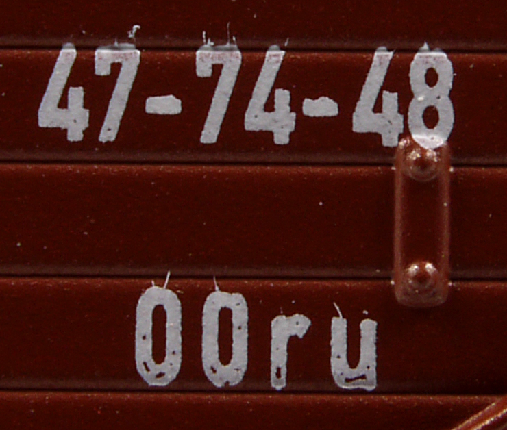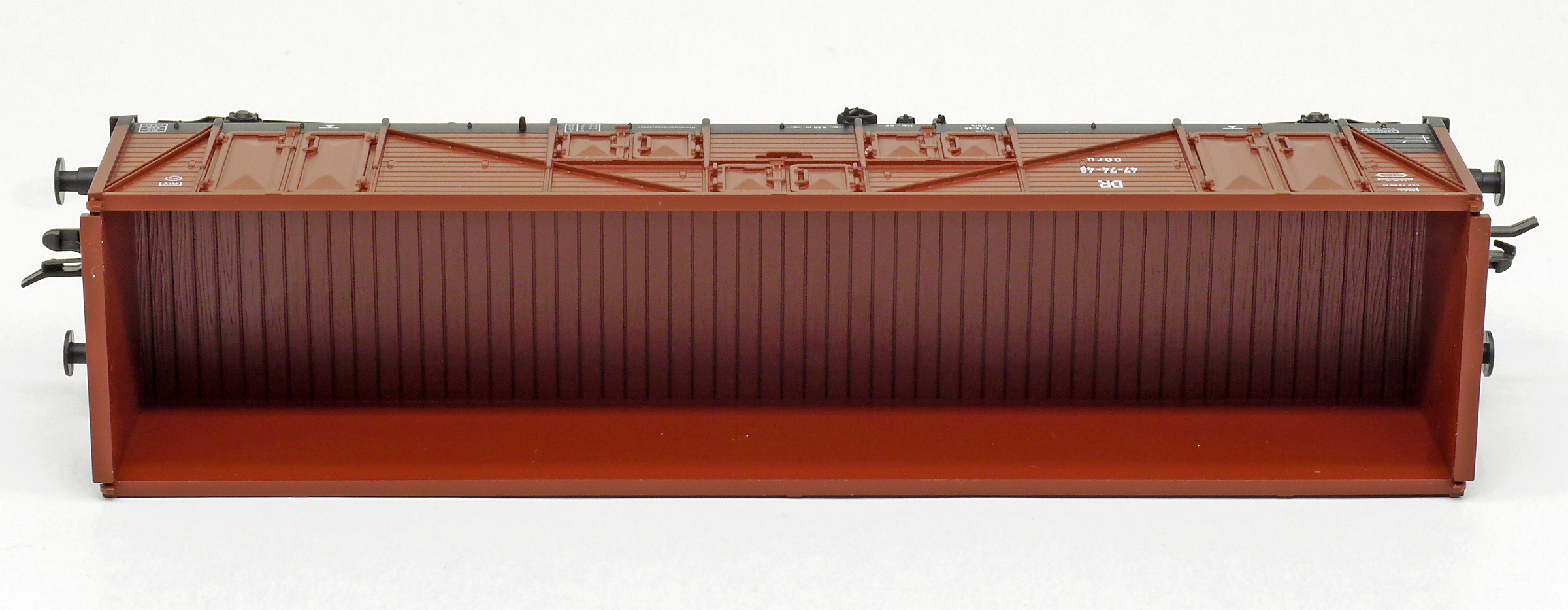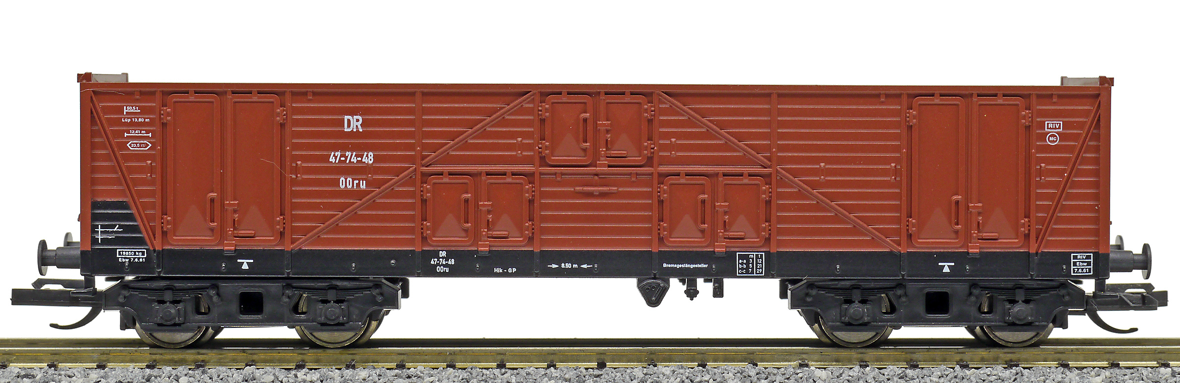 Popis   vysokostěnný nákladní vůz červenohnědý, černý rám a podvozky