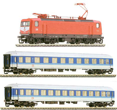 Popis   set elektrické lokomotivy BR 112.1 a dvou rychlíkových vozů v barvách InterRegio