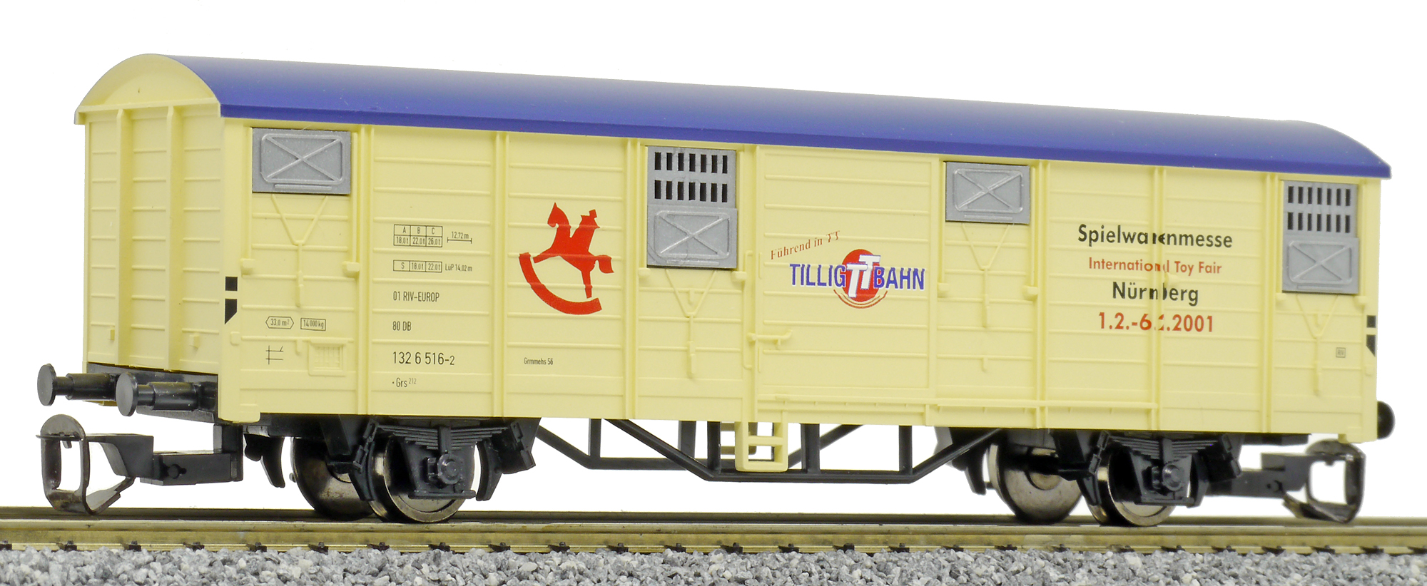 krytý nákladní vůz krémový šedou střechou „Spielwarenmesse Nürnberg 2001“