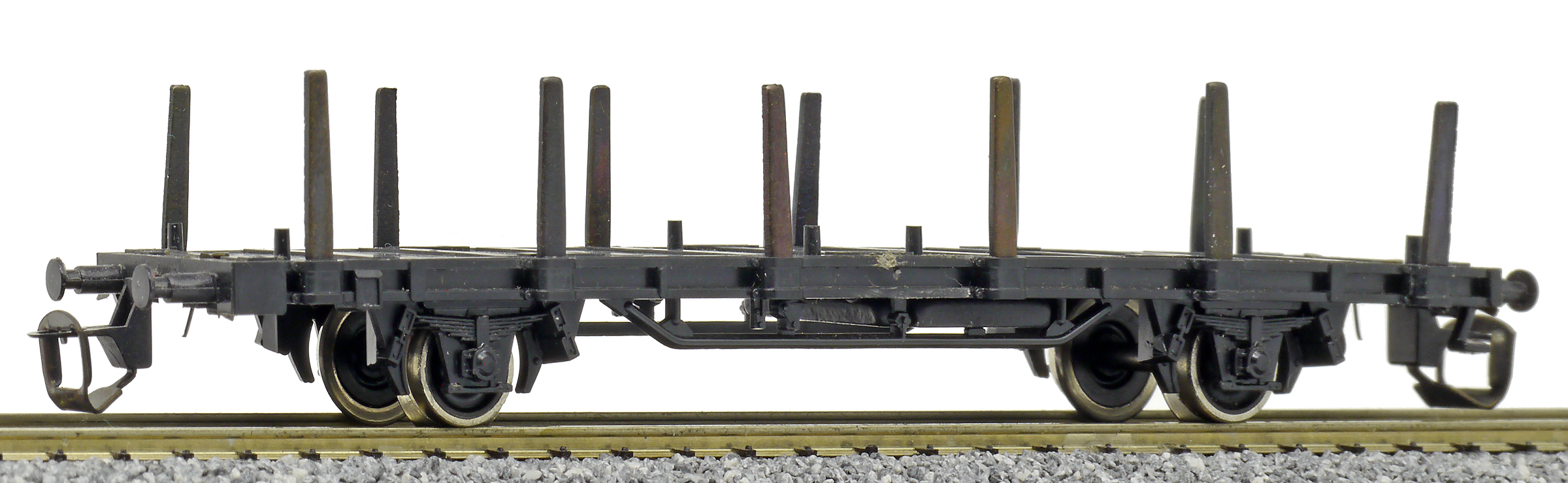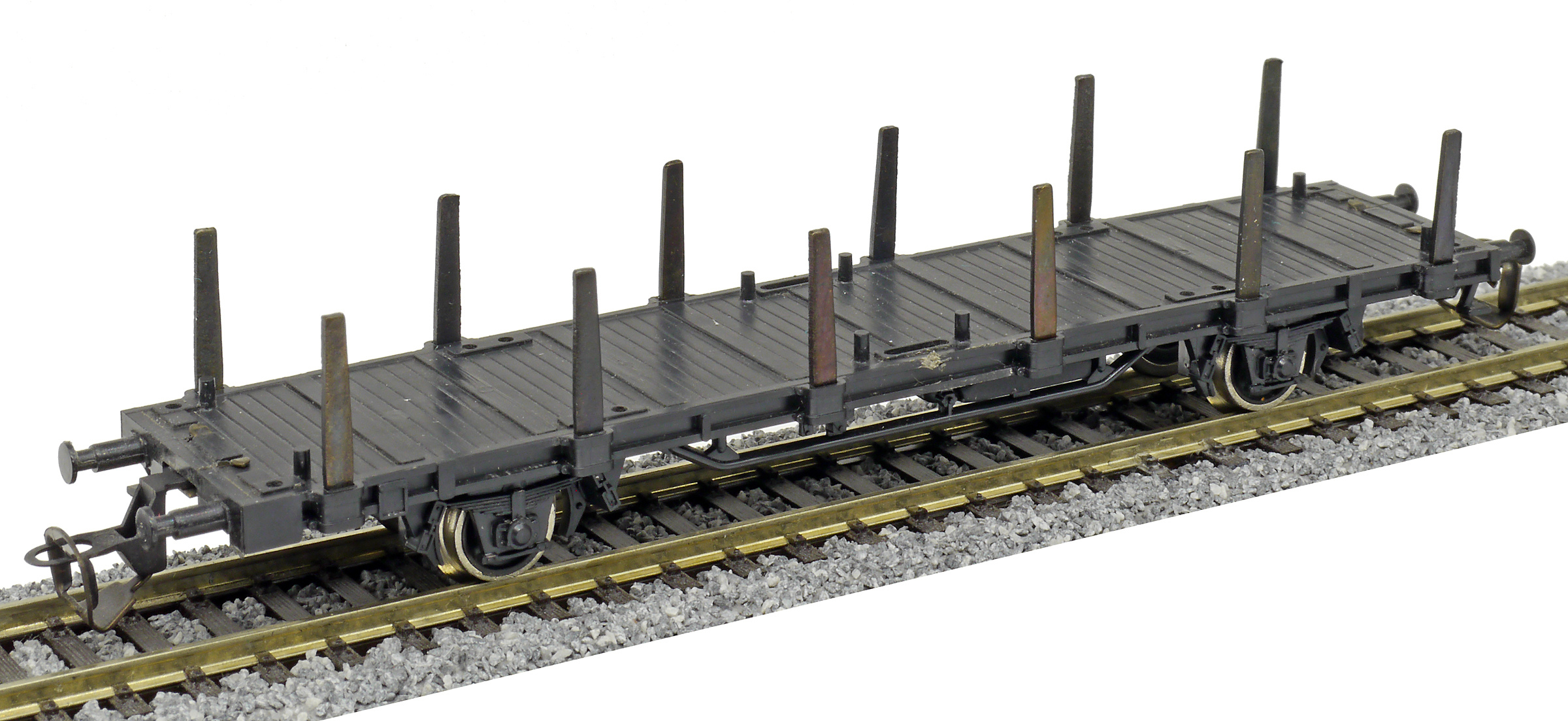 plošinový nákladní vůz černý s klanicemi