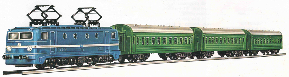 | set elektrické lokomotivy a tří rychlíkových vozů |