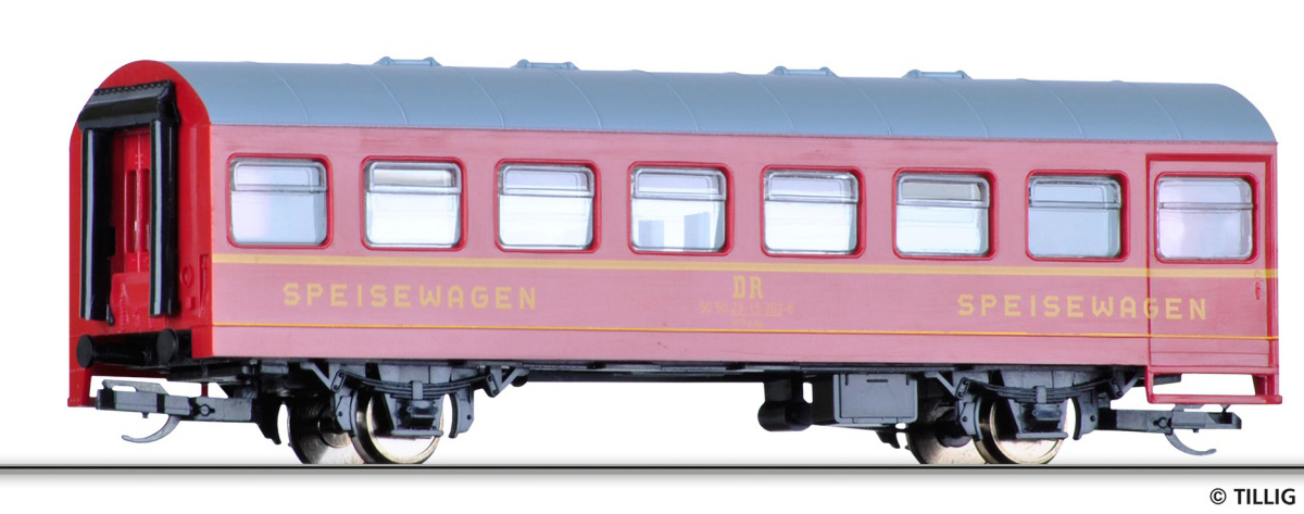 | červený s šedou střechou jídelní vůz „MITROPA“ |