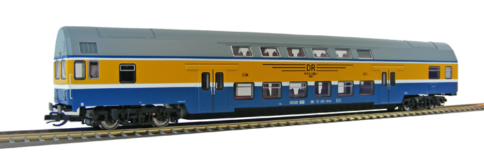 | řídící patrový vůz v barevné kombinaci modrá-žlutá „S-Bahn Halle-Leipzig“ |