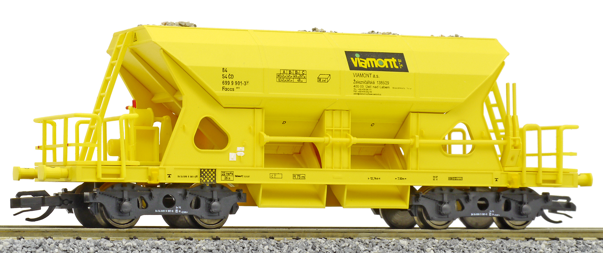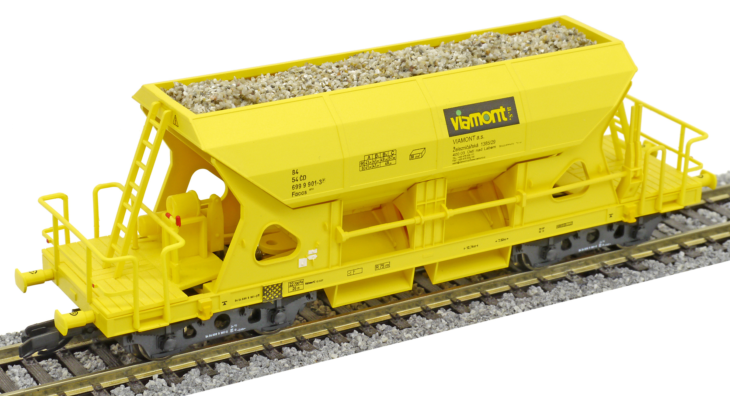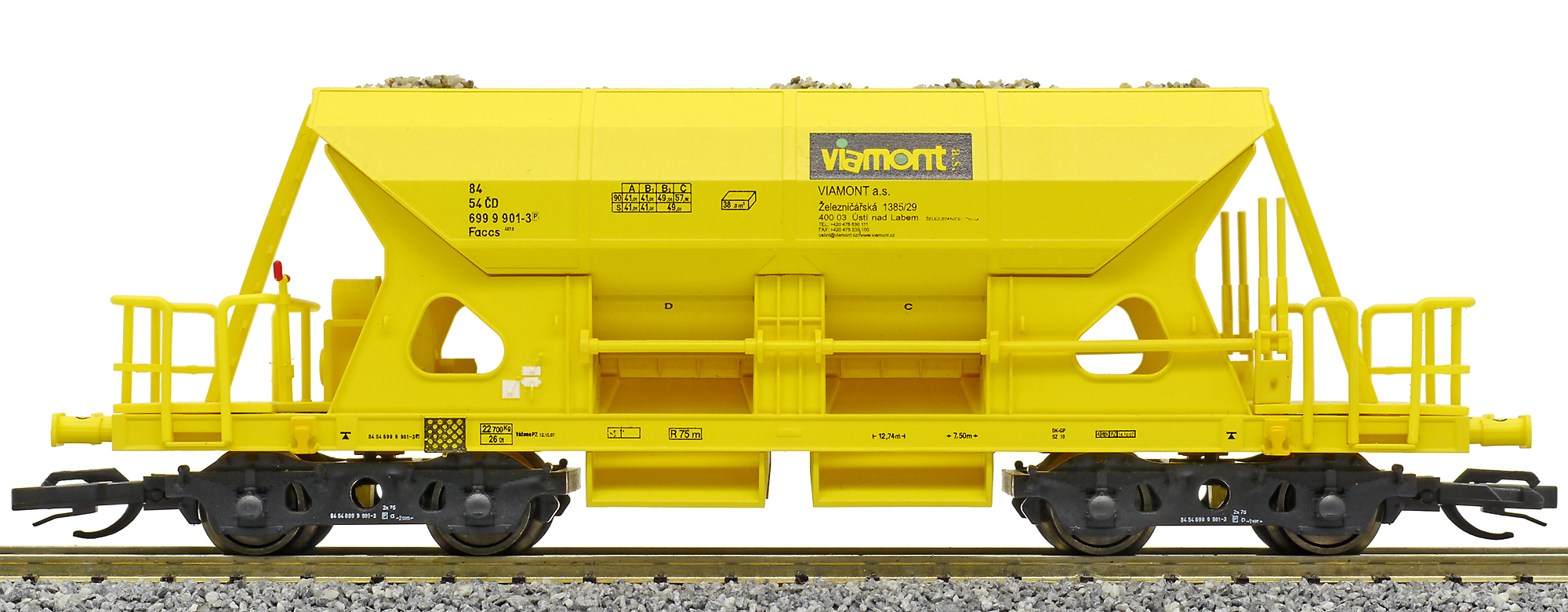 | nákladní samovýsypný vůz žlutý s nákladem štěrku „Viamont” |