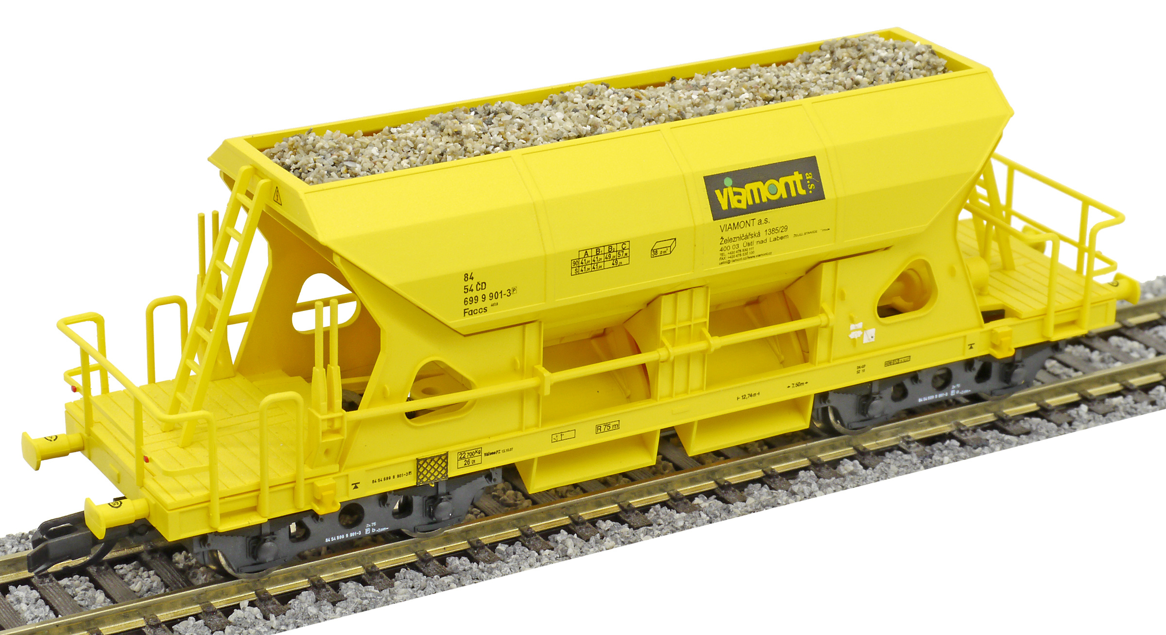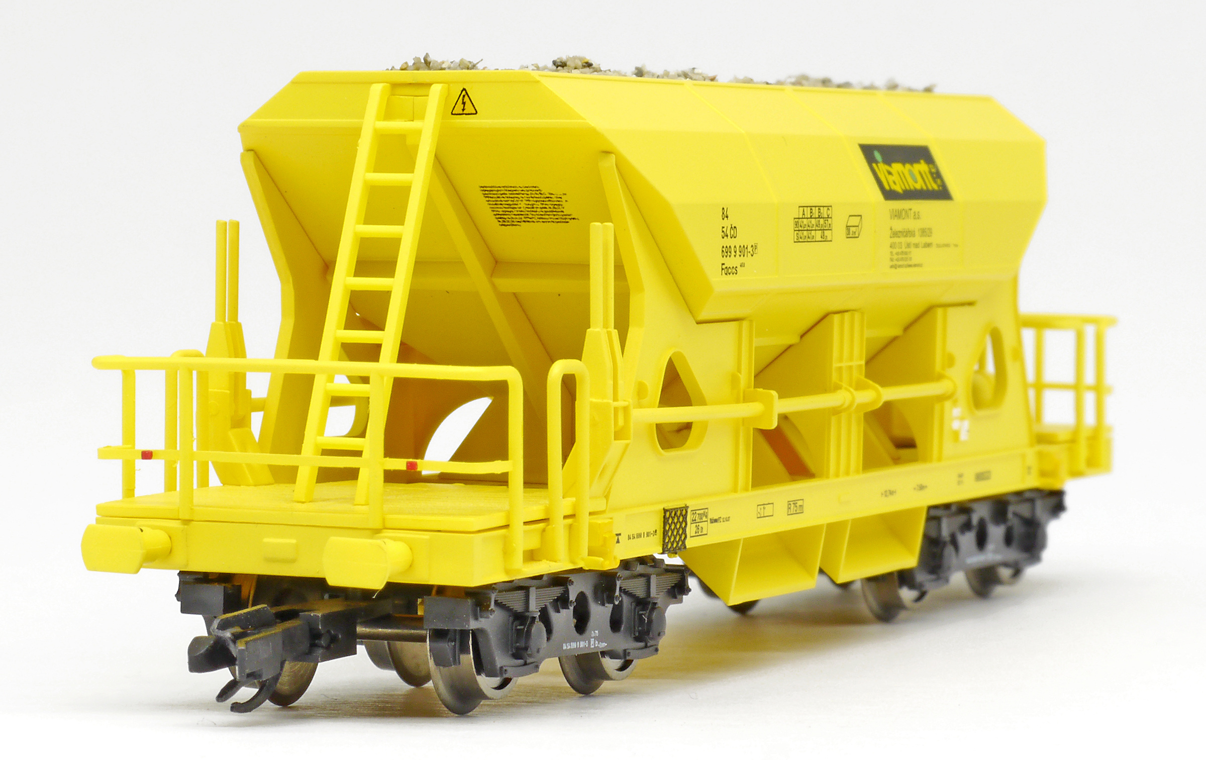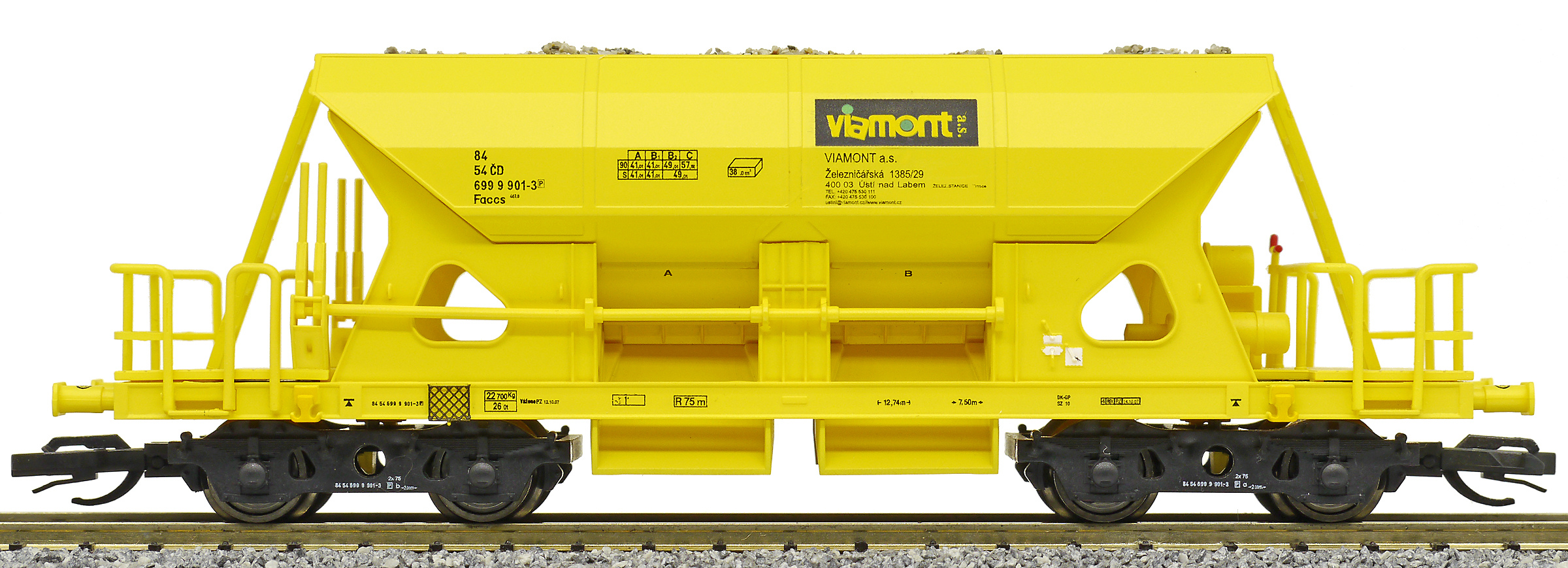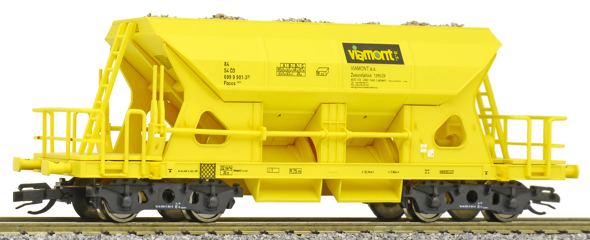 | nákladní samovýsypný vůz žlutý s nákladem štěrku „Viamont” |