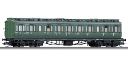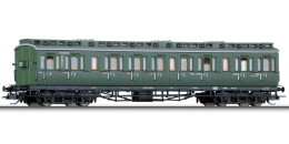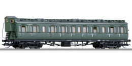 | oddílový osobní vůz zelený s tmavě šedou střechou a s brzdařskou budkou 3. tř. |