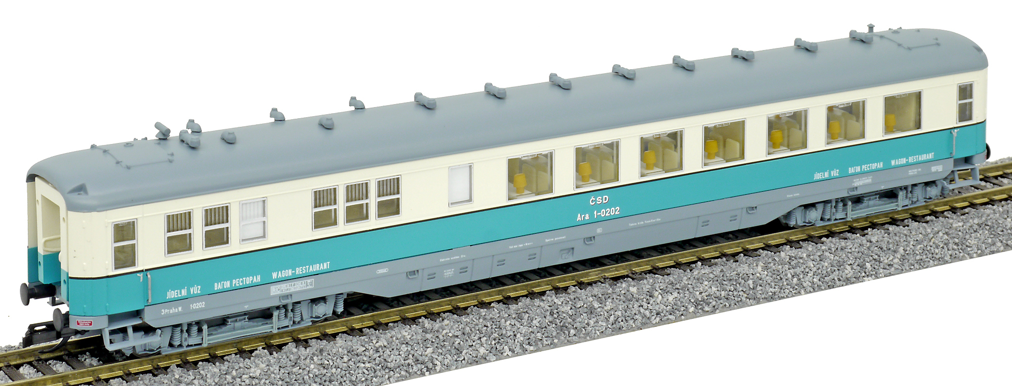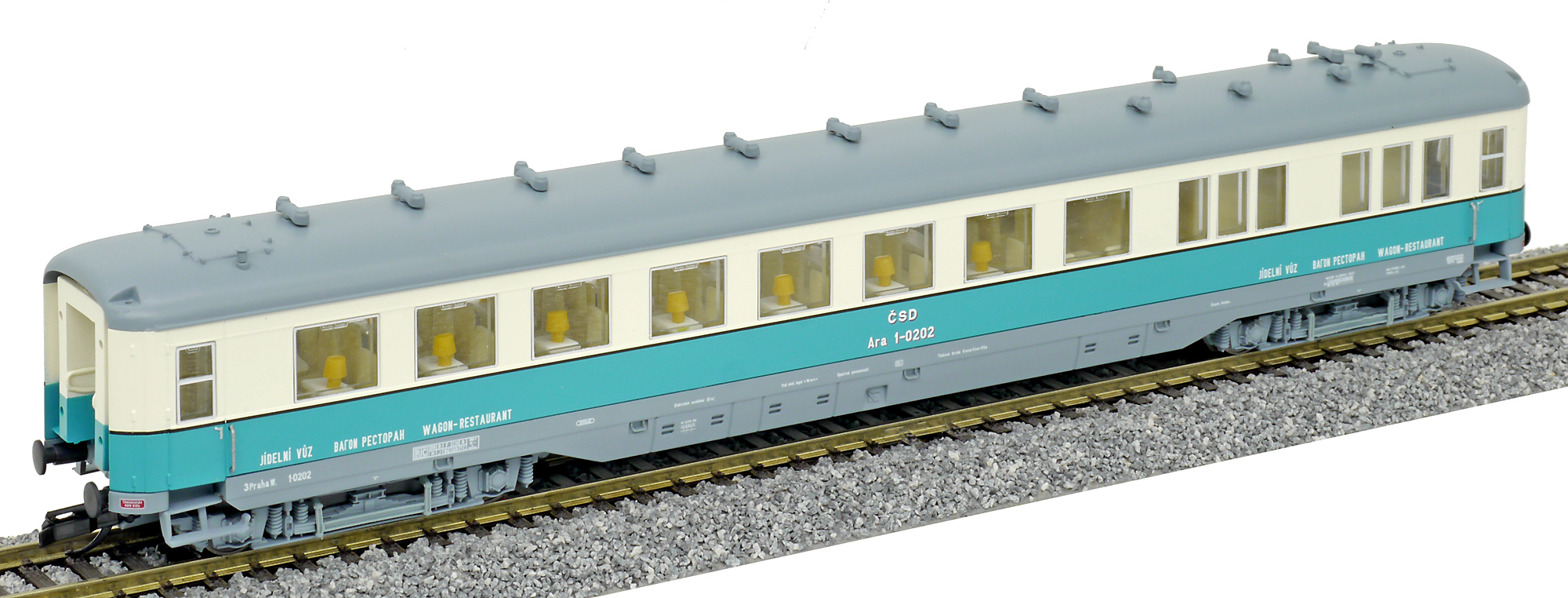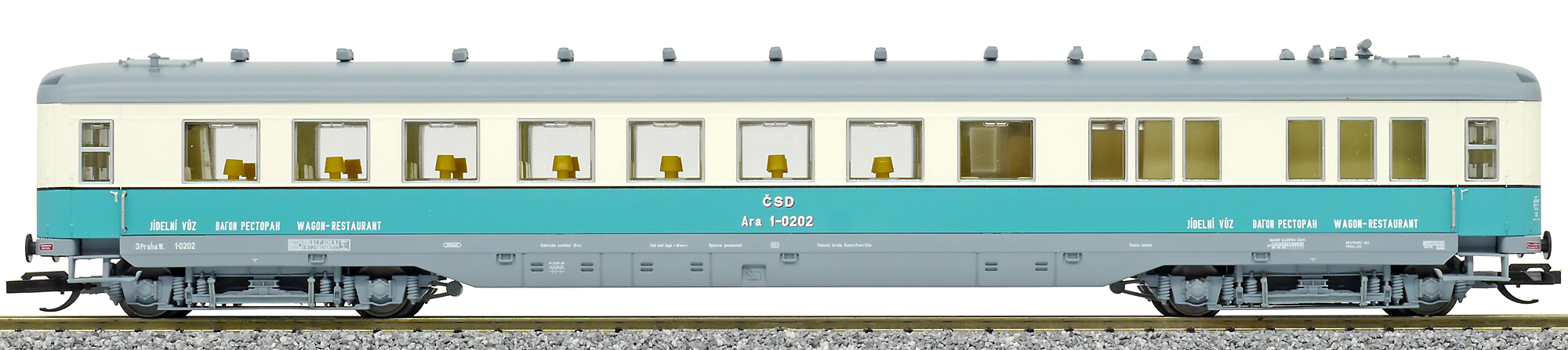 | jídelní vůz modrý-slonová kost s šedou střechou |