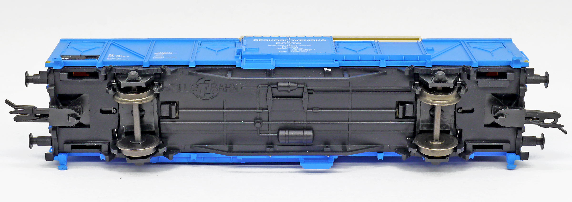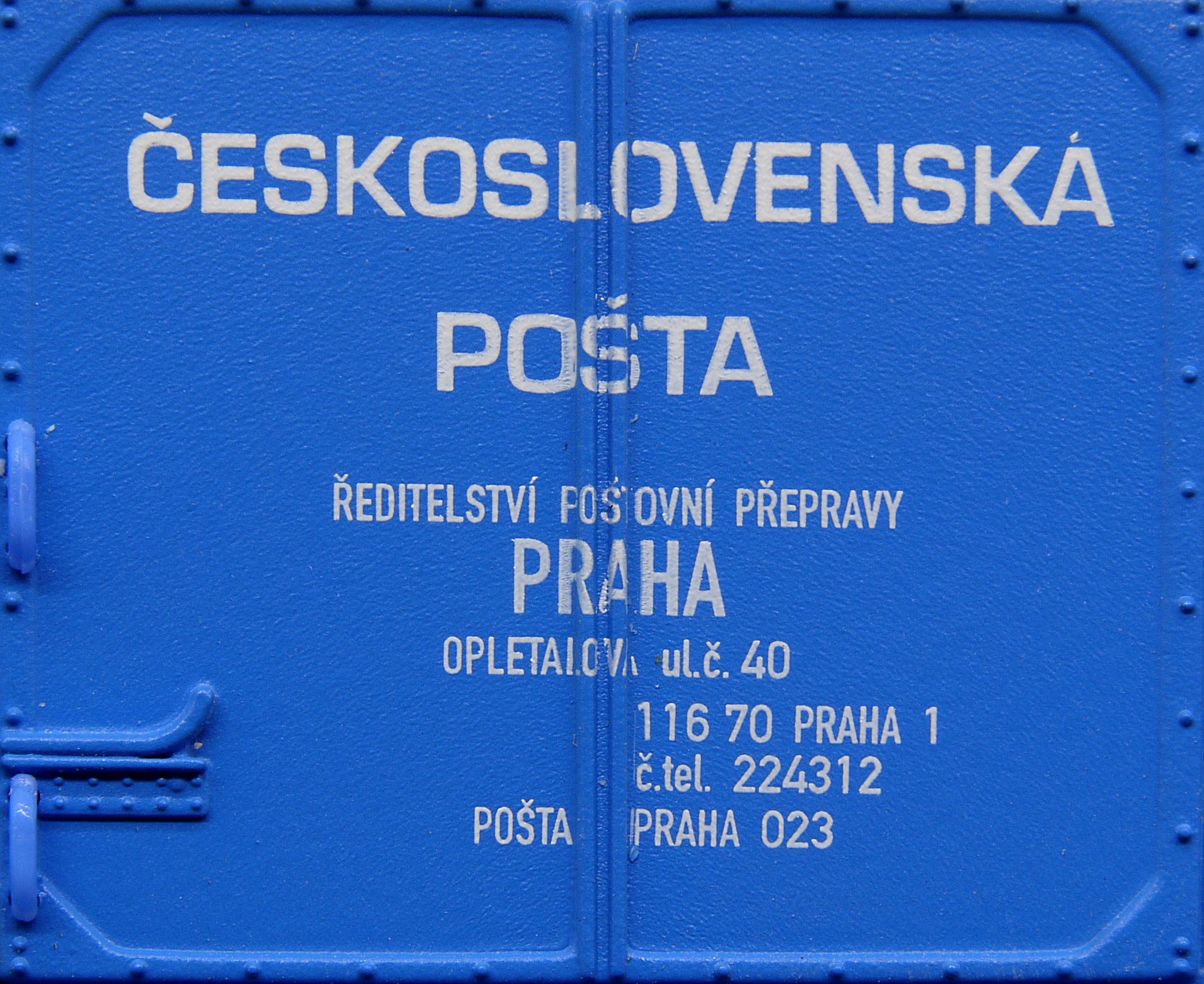 | krytý nákladní vůz modrý s šedou střechou „ČESKOSLOVENSKÁ POŠTA“ |