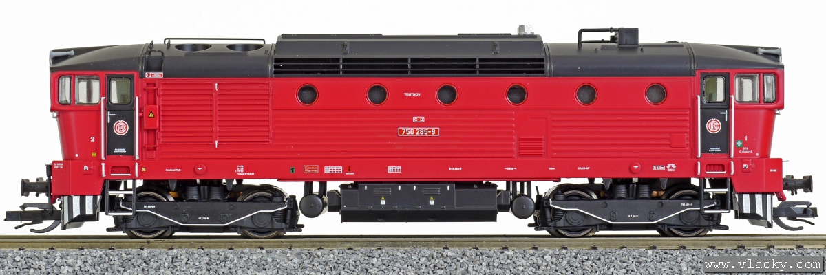 Popis   dieselová lokomotiva červená s černou střechou a pojezdem