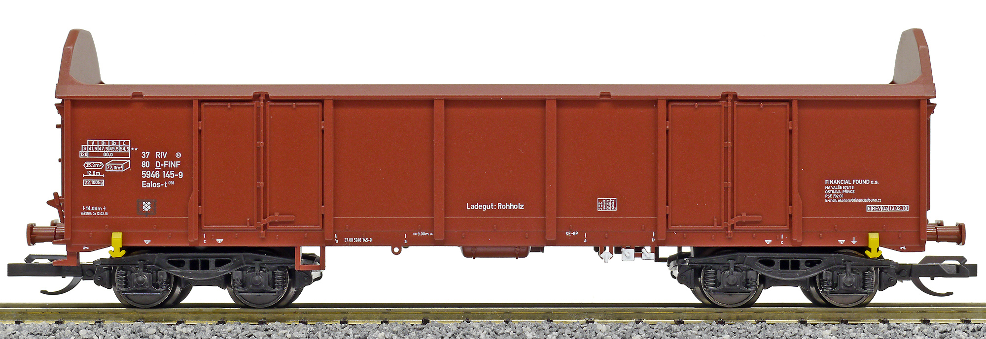 | • 37 80 5946 145-9 | → | nákladní, s podvozky, pevný rozchod, ve vlastnictví železniční správy, PPV |