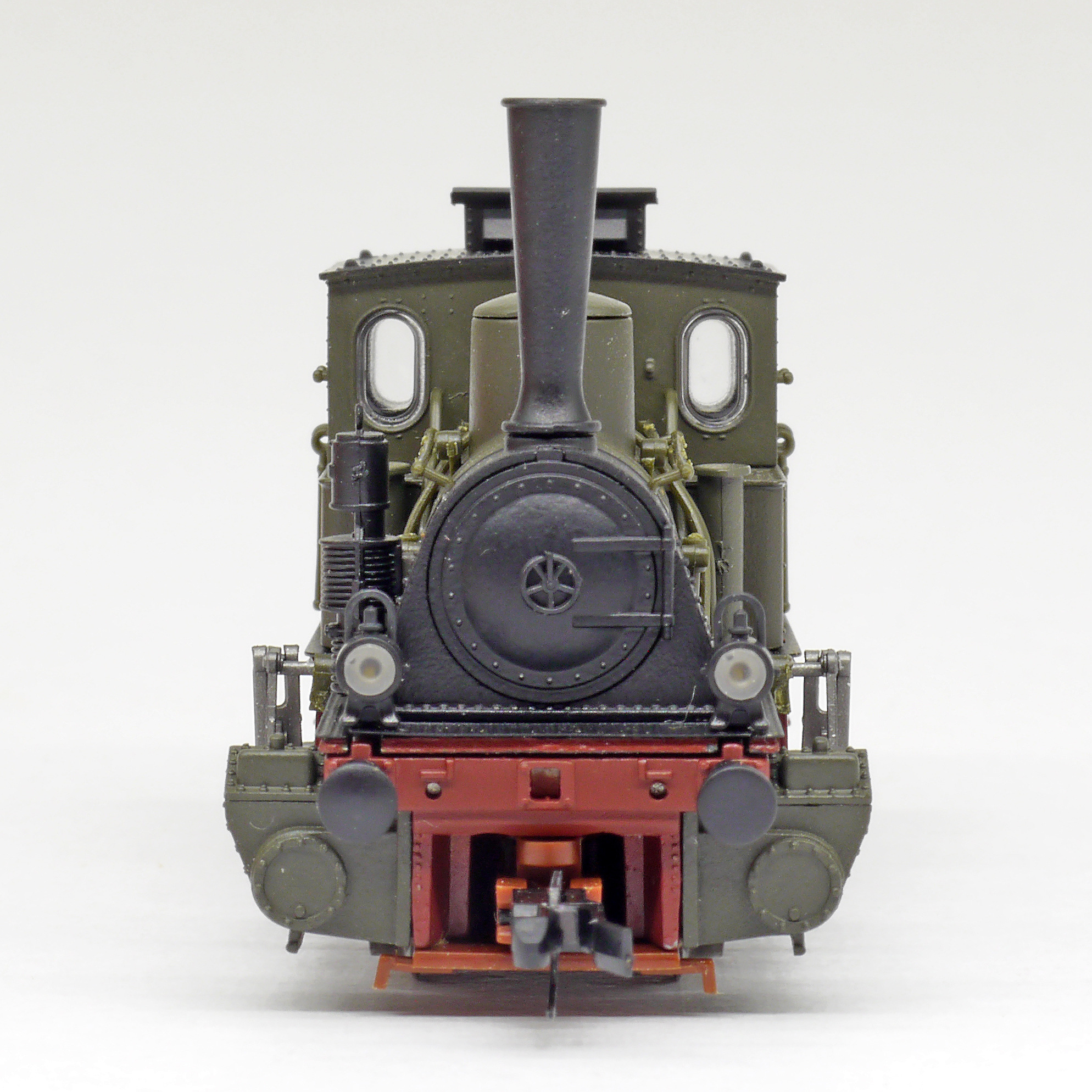 Popis   parní lokomotiva tmavě zelená s tmavě červeným pojezdem