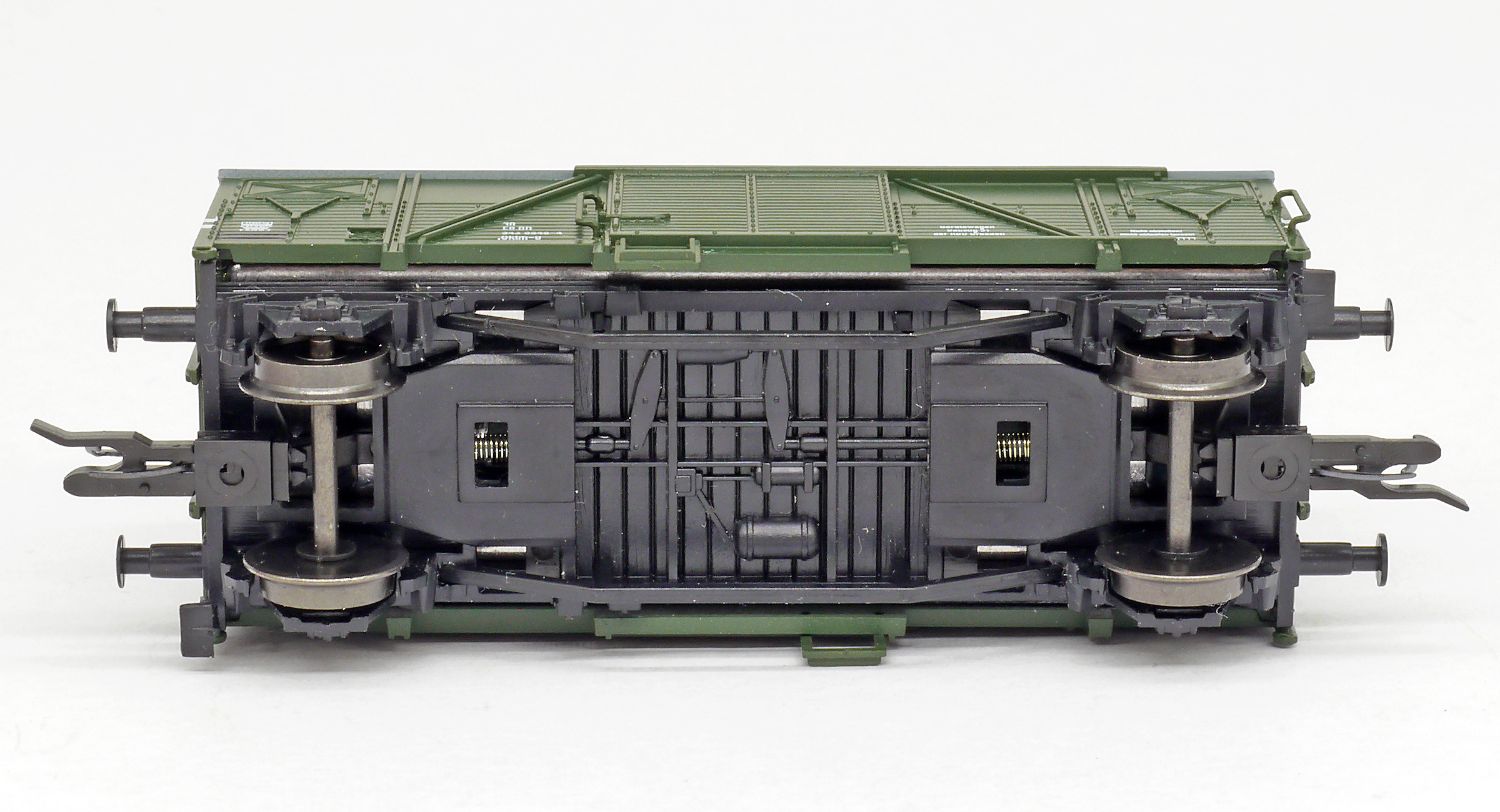 | nákladní vůz tmavě zelený s šedou střechou do pracovního vlaku |