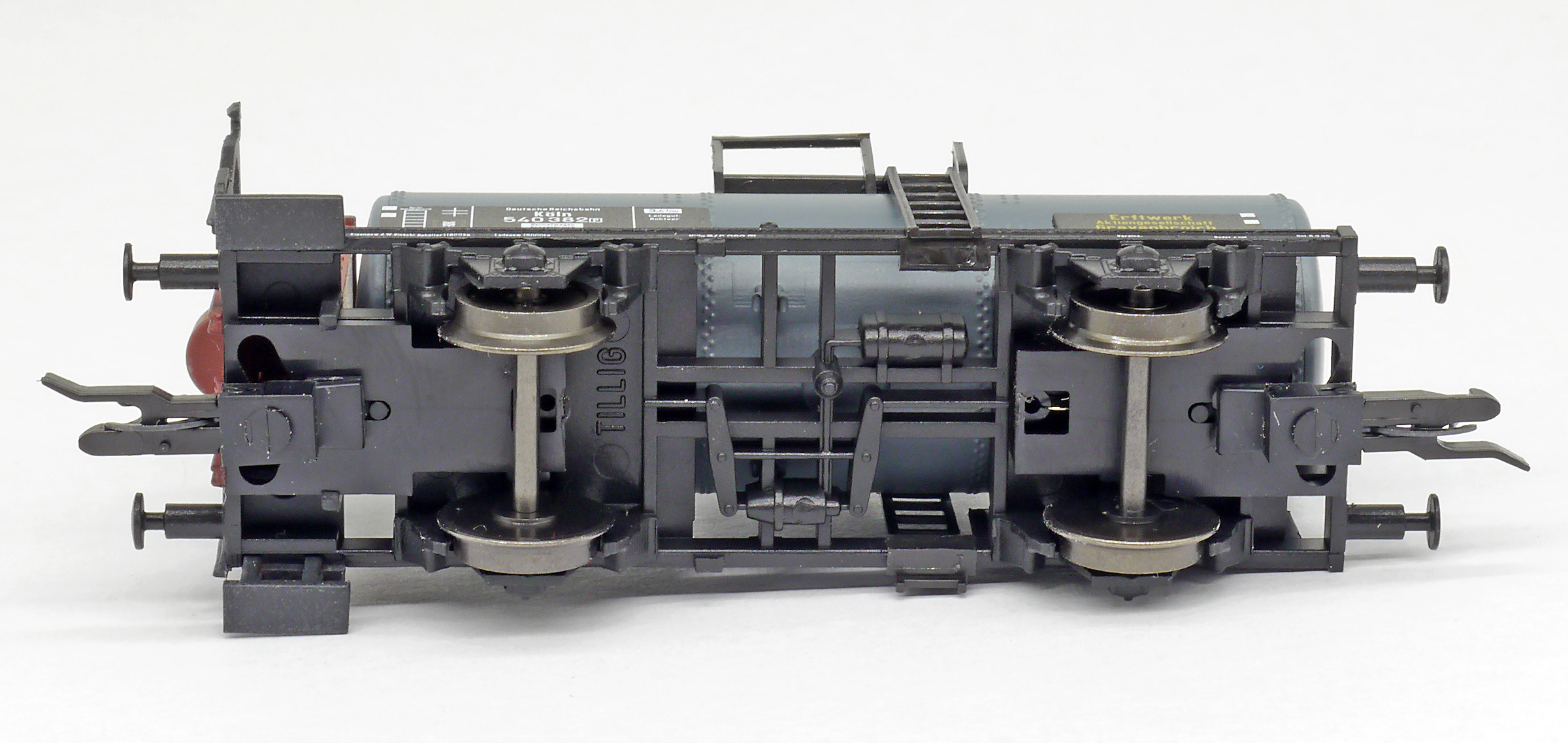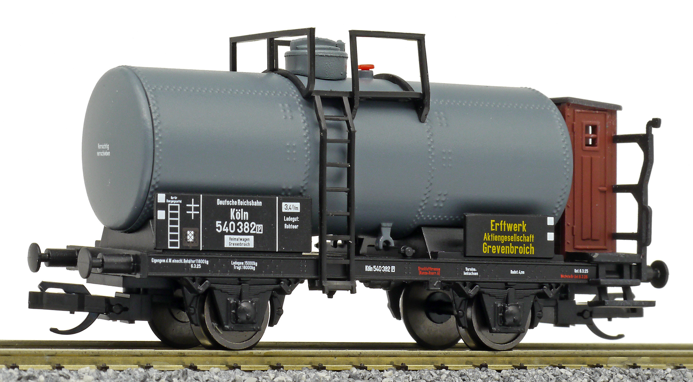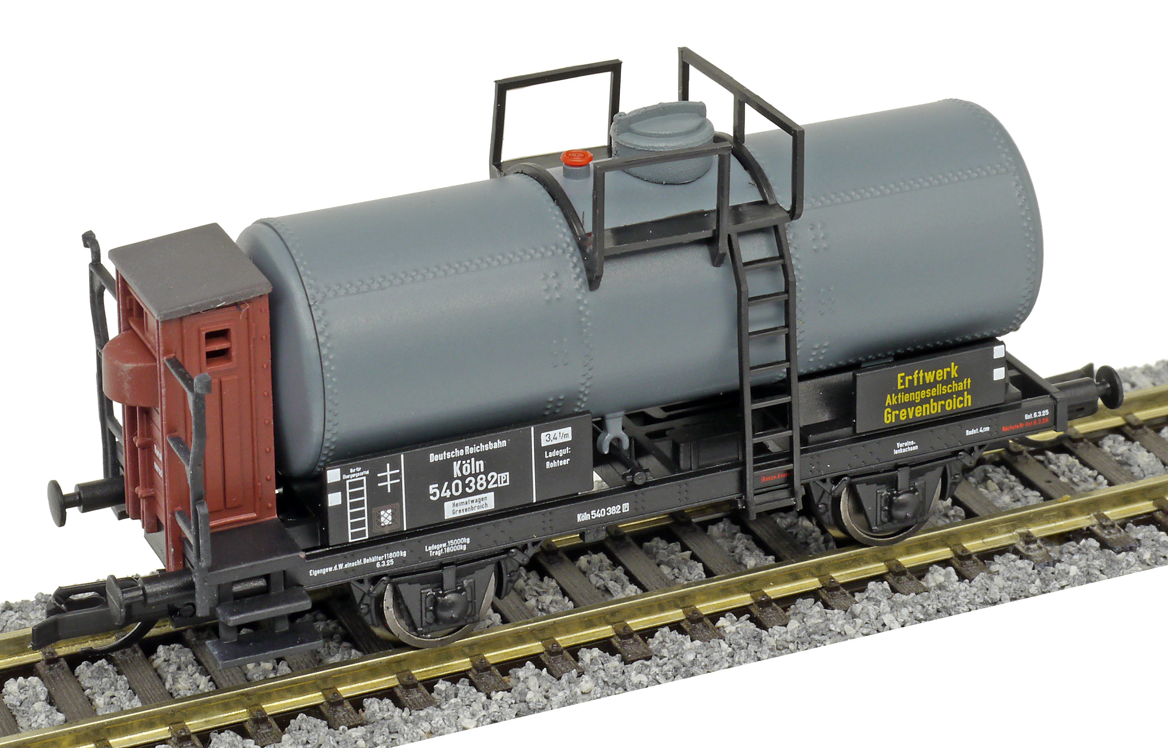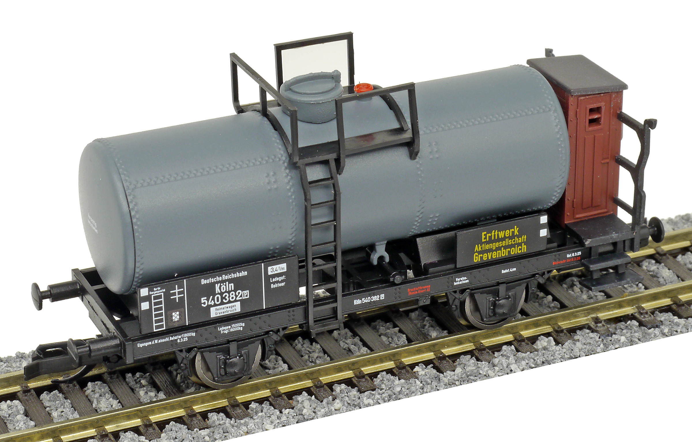 | kotlový vůz tmavě šedý s brzdařskou budkou „Erftwerk AG, Grevenbroich“ |