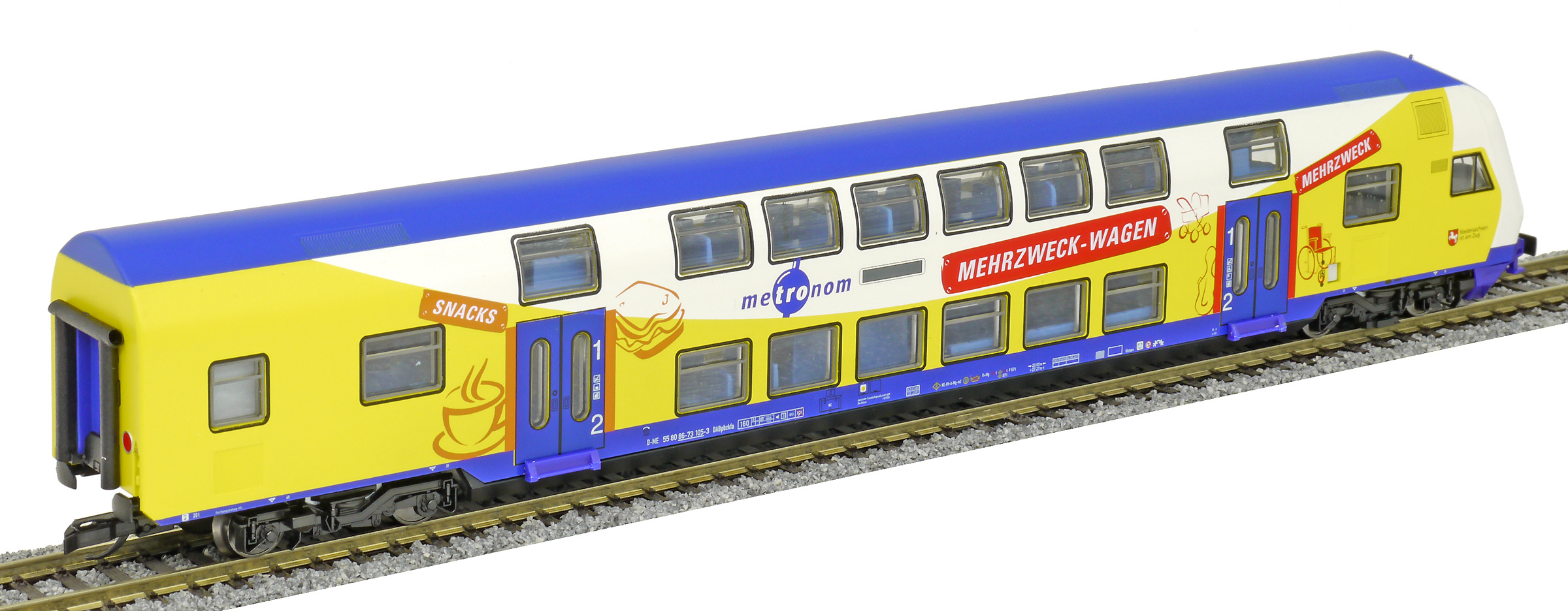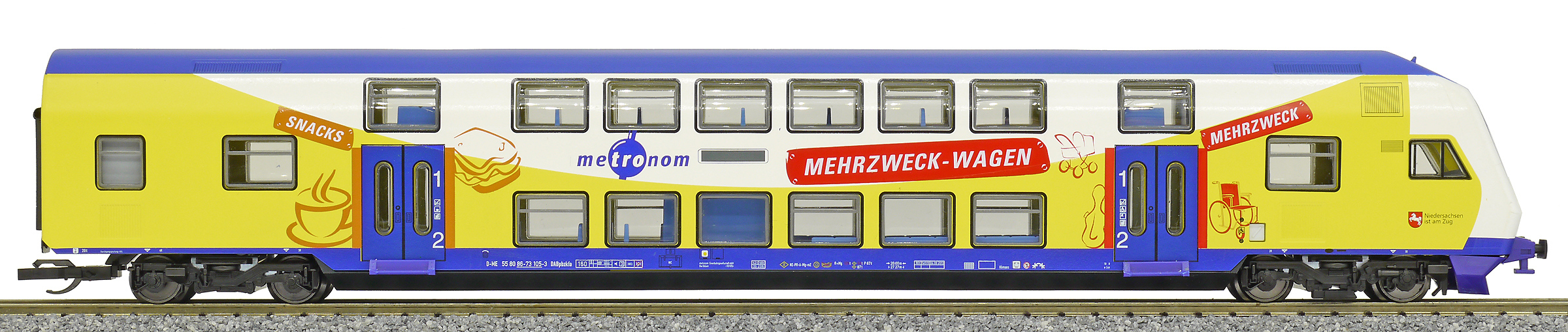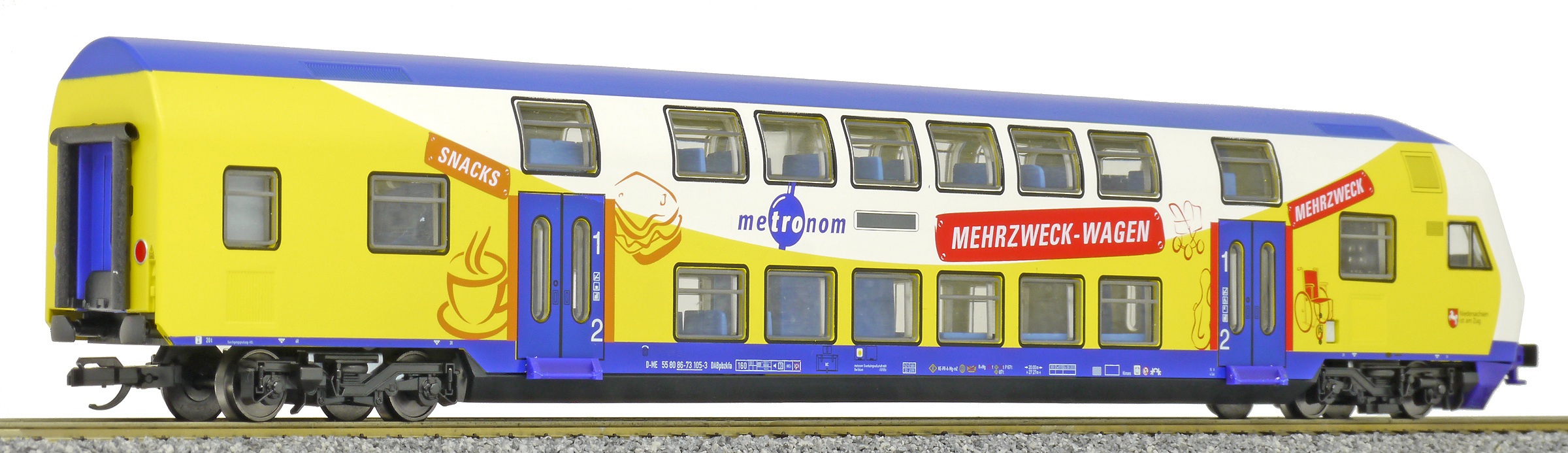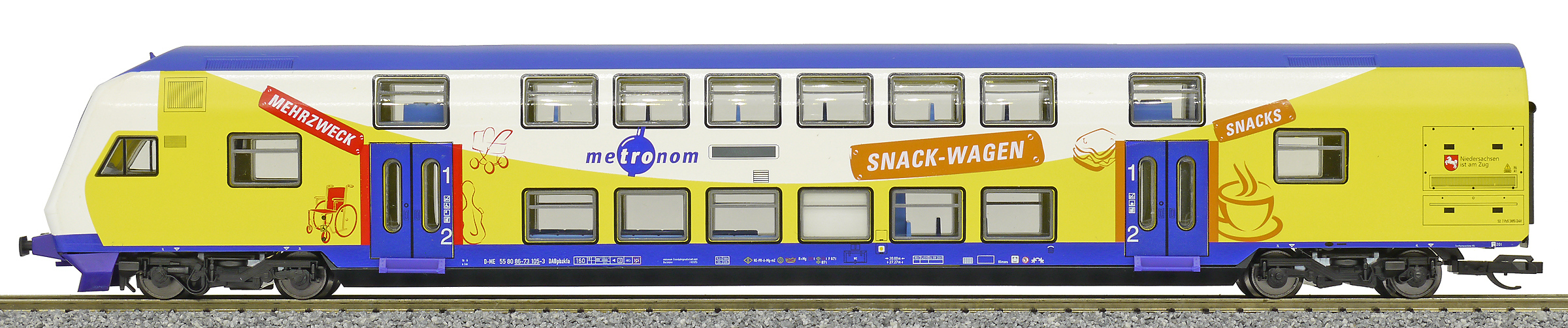 | řídící patrový vůz 1./2. tř. v barevném schematu „metronom Eisenbahngesellschaft“ |