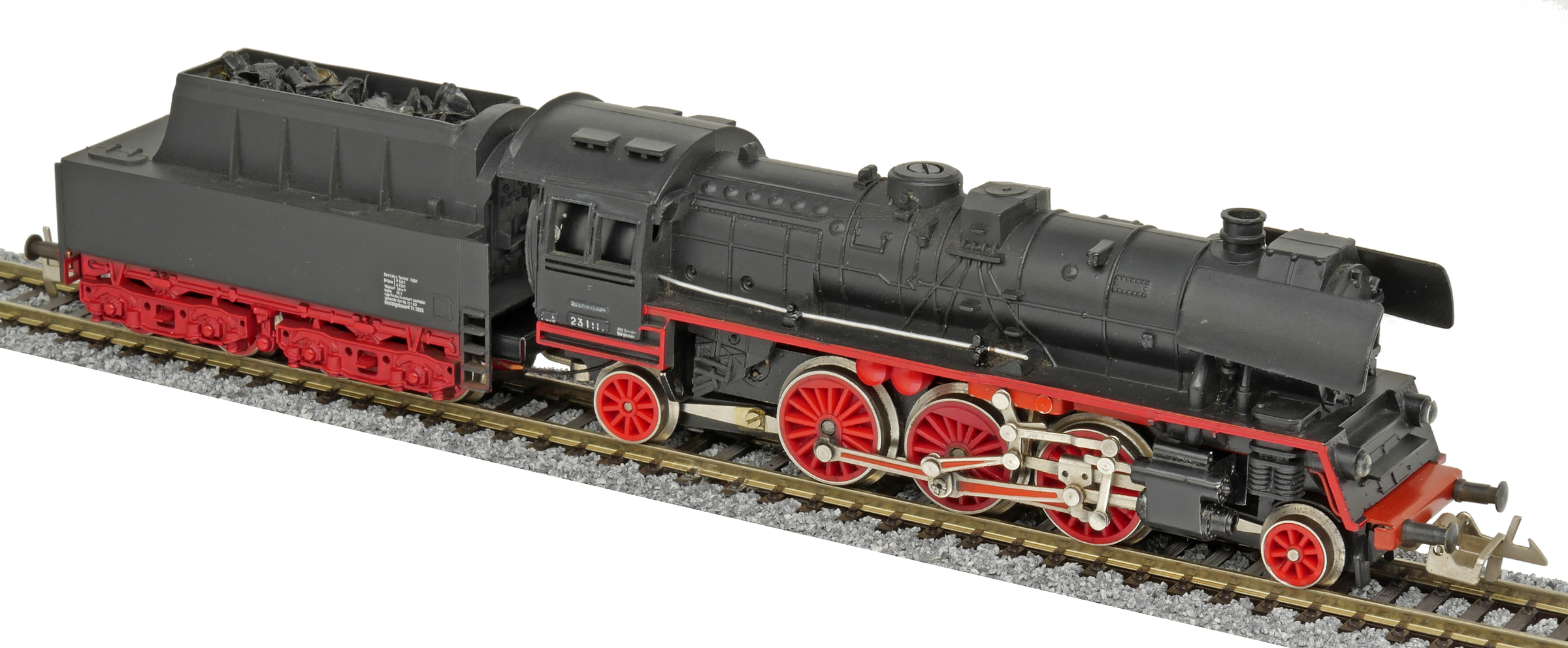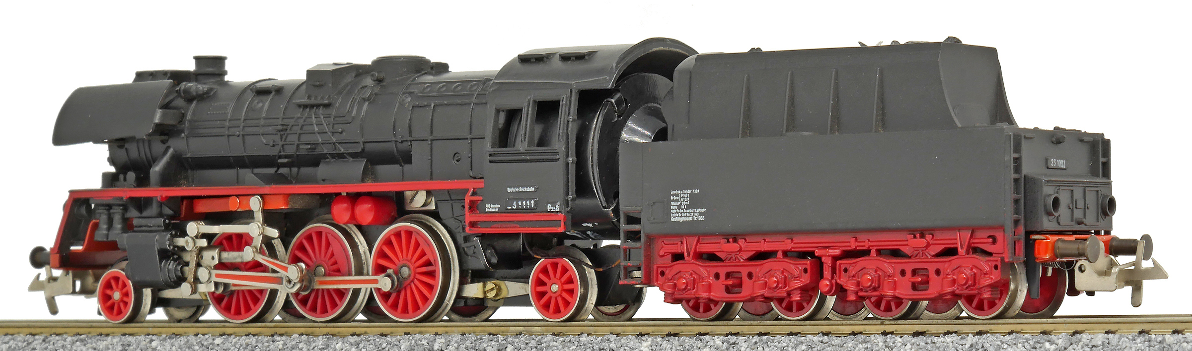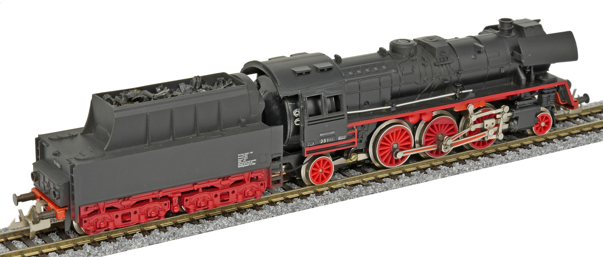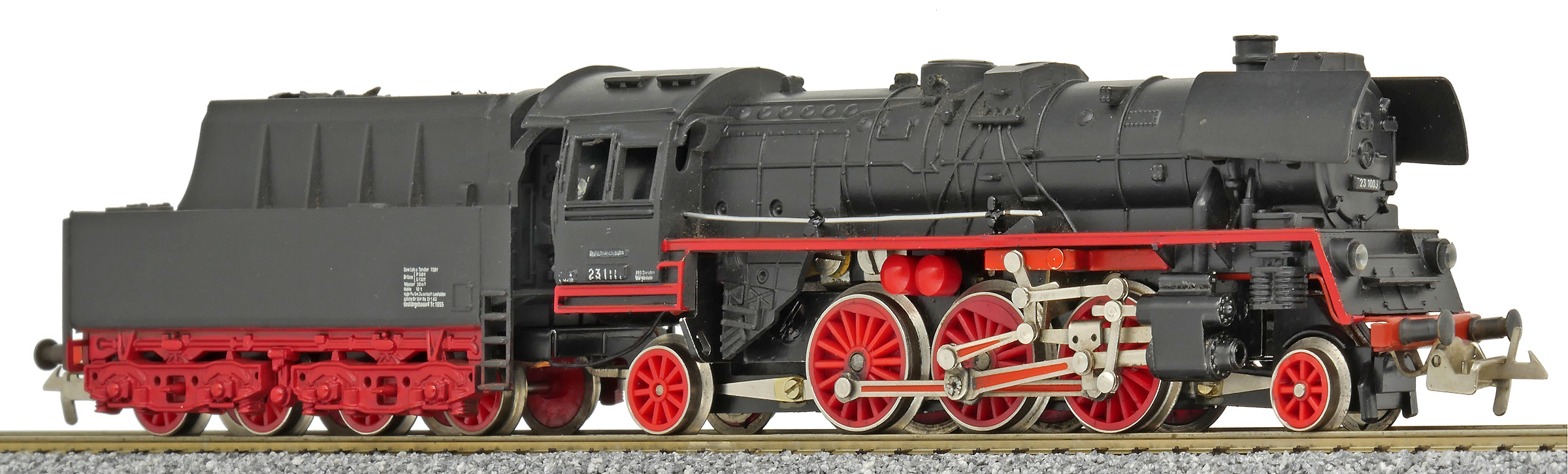 měřítko 1:120 - rozchod kolejí 12 mm osvětlení - 2 čelní reflektory 3 hnané nápravy 1 bandážovaná náprava nenormované uchycení spřáhla digitalizace možná jen s úpravami 194 mm - celková délka modelu přes nárazníky 1'C1'+4 - celkový počet náprav nebo rozložení náprav 230 g - hmotnost brutto - model včetně prodejního obalu 170 g - hmotnost netto - pouze model