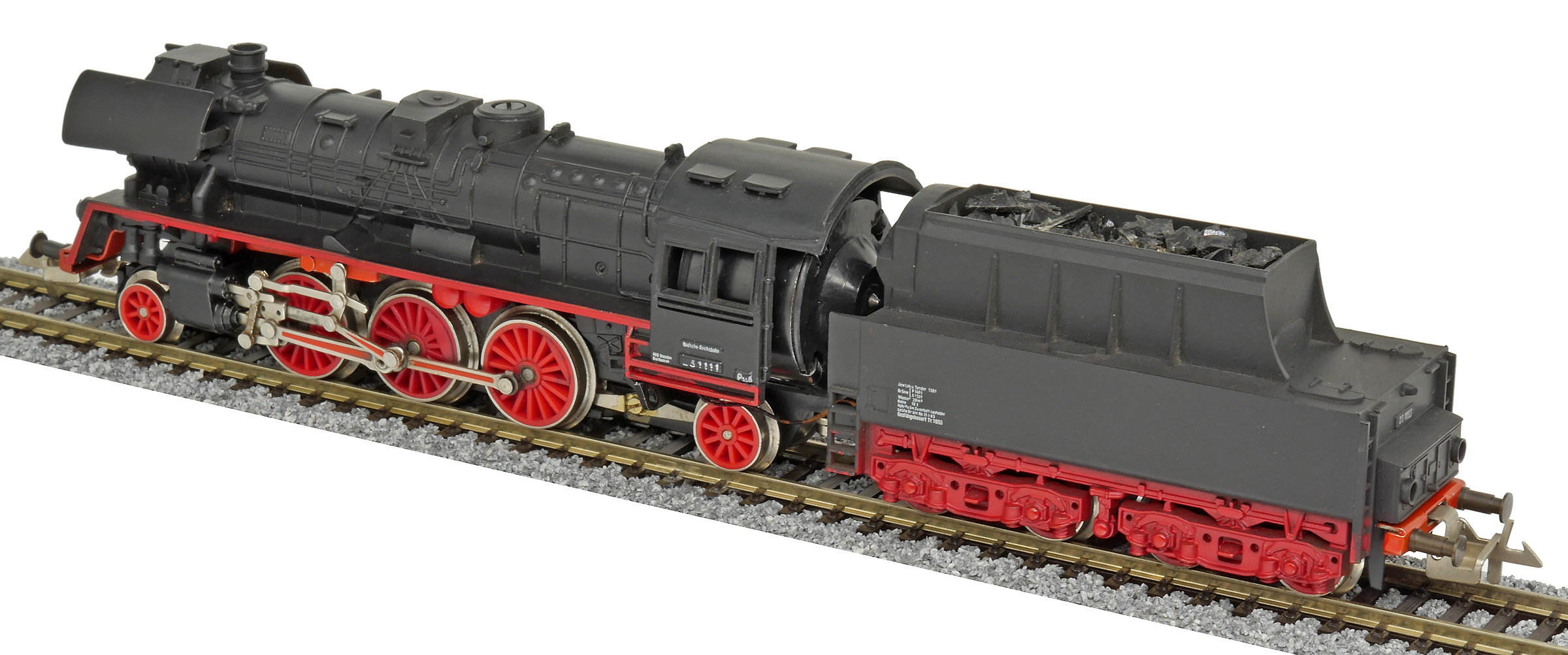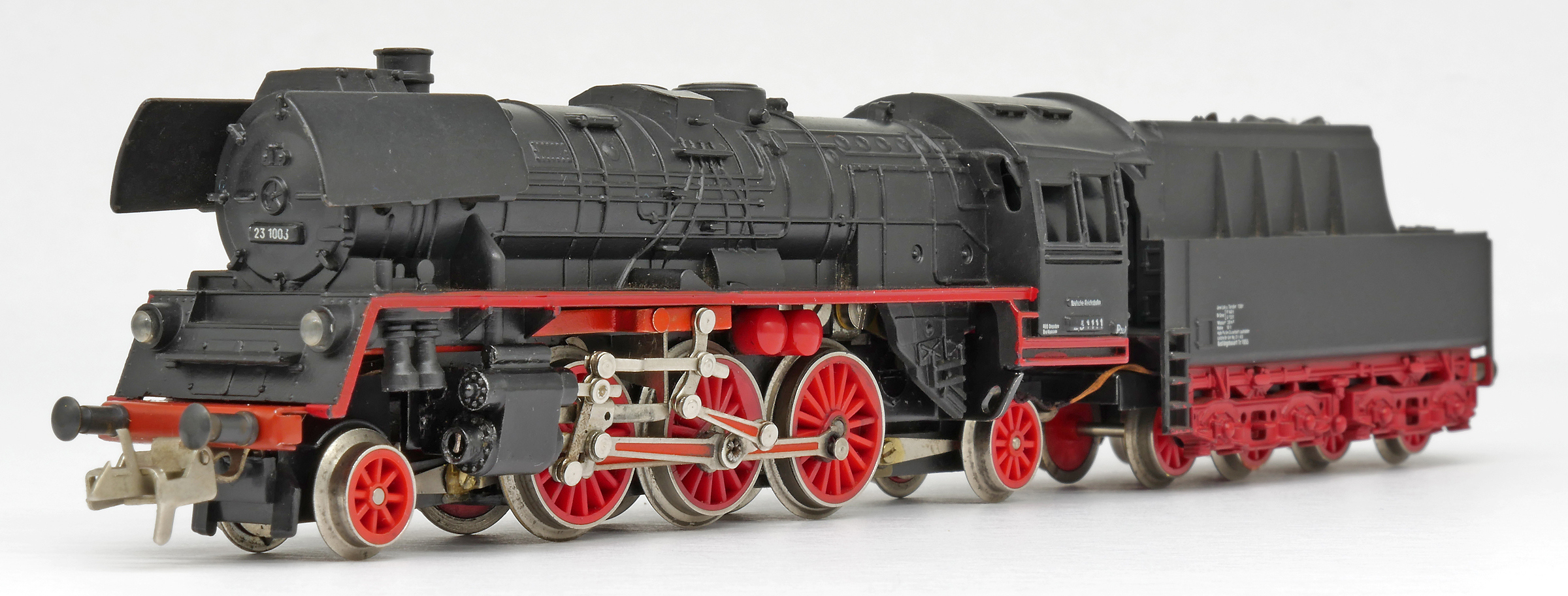 měřítko 1:120 - rozchod kolejí 12 mm osvětlení - 2 čelní reflektory 3 hnané nápravy 1 bandážovaná náprava nenormované uchycení spřáhla digitalizace možná jen s úpravami 194 mm - celková délka modelu přes nárazníky 1'C1'+4 - celkový počet náprav nebo rozložení náprav 230 g - hmotnost brutto - model včetně prodejního obalu 170 g - hmotnost netto - pouze model