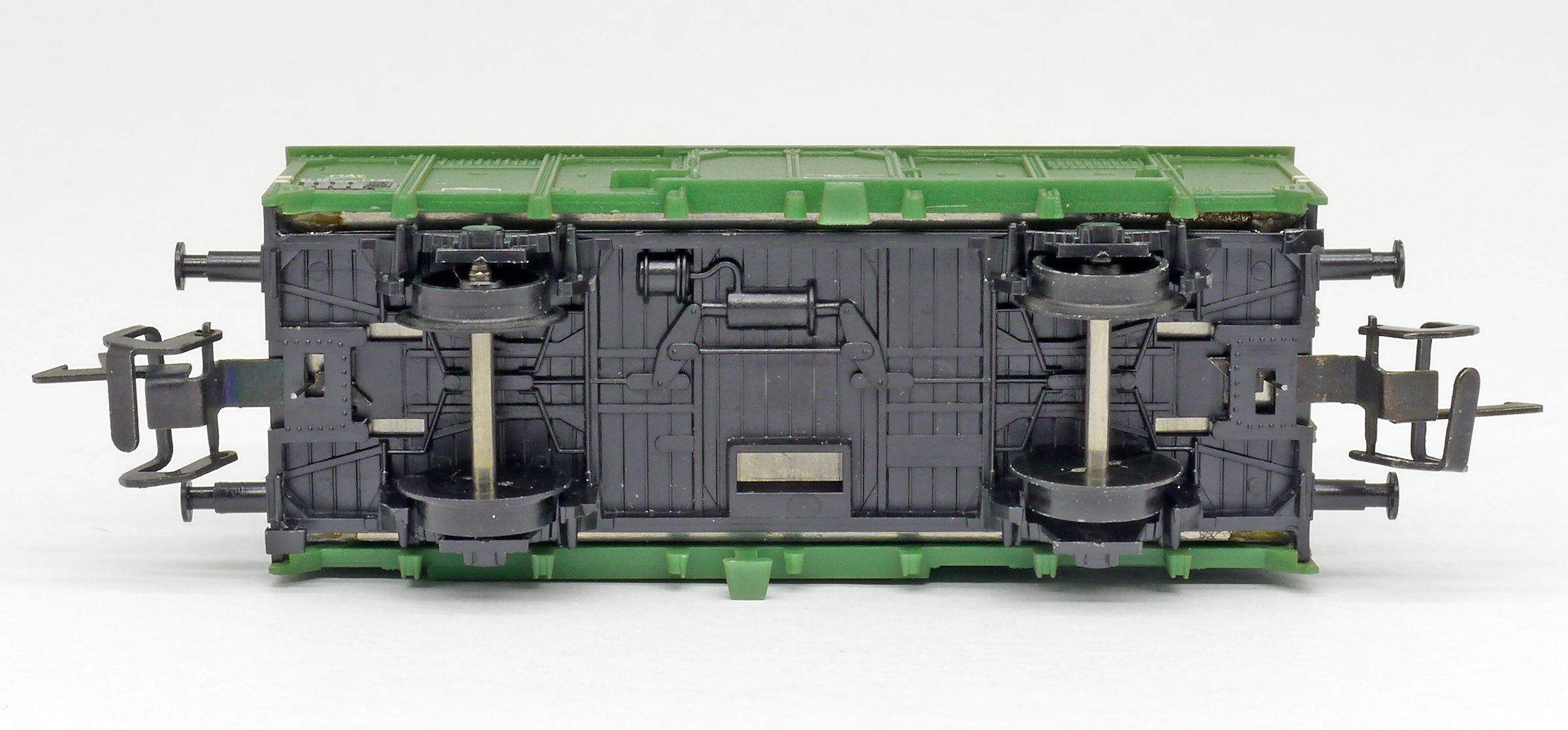 krytý nákladní vůz zelený s šedou střechou