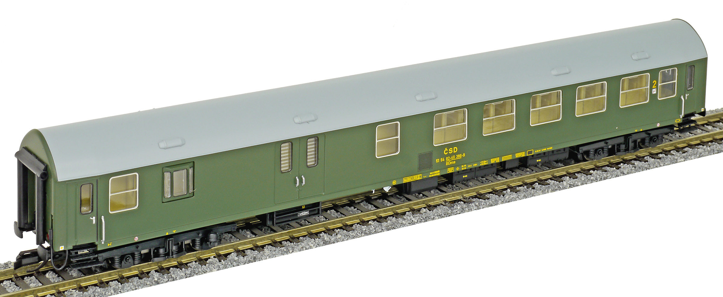 | rychlíkový vůz zelený s šedou střechou 2. tř. a zavazadlovým oddílem |