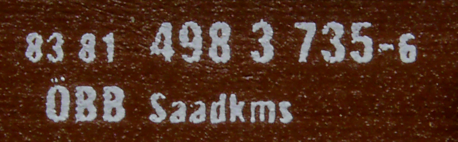 | • 83 81 4983 735-6 | → | nákladní, s podvozky, soukromý vůz, pro mezinárodní dopravu dle zvláštních úmluv |