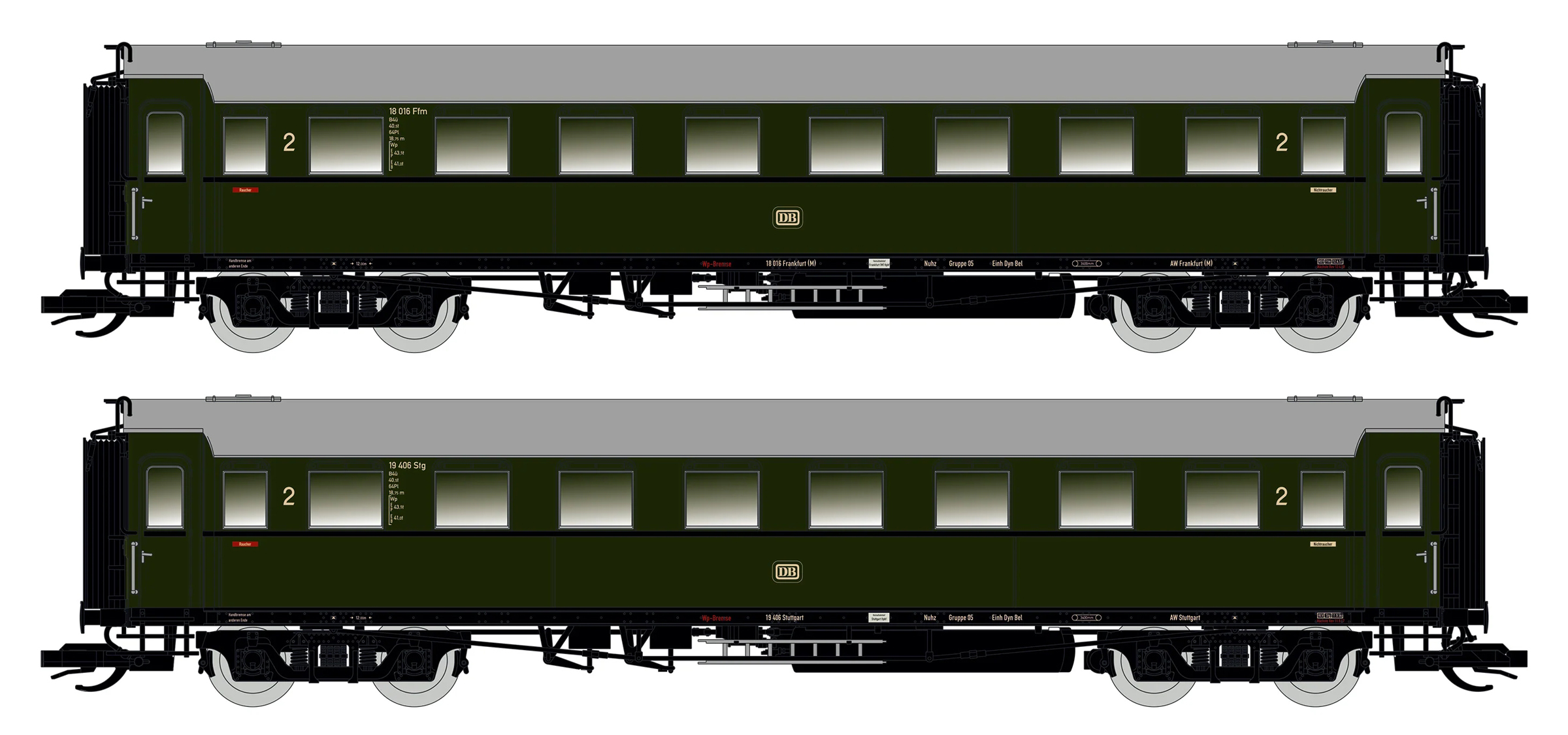| oddílový osobní vůz zelený s šedou střechou 2. tř. |