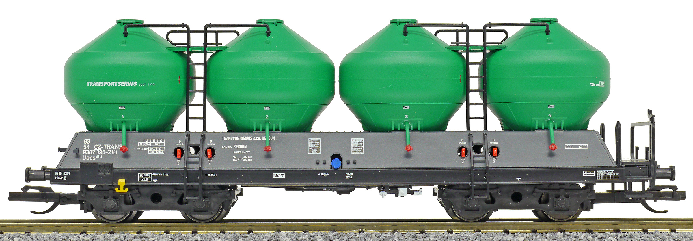 | • 83 54 9307 196-2 | → | nákladní, s podvozky, soukromý vůz, pro mezinárodní dopravu dle zvláštních úmluv |