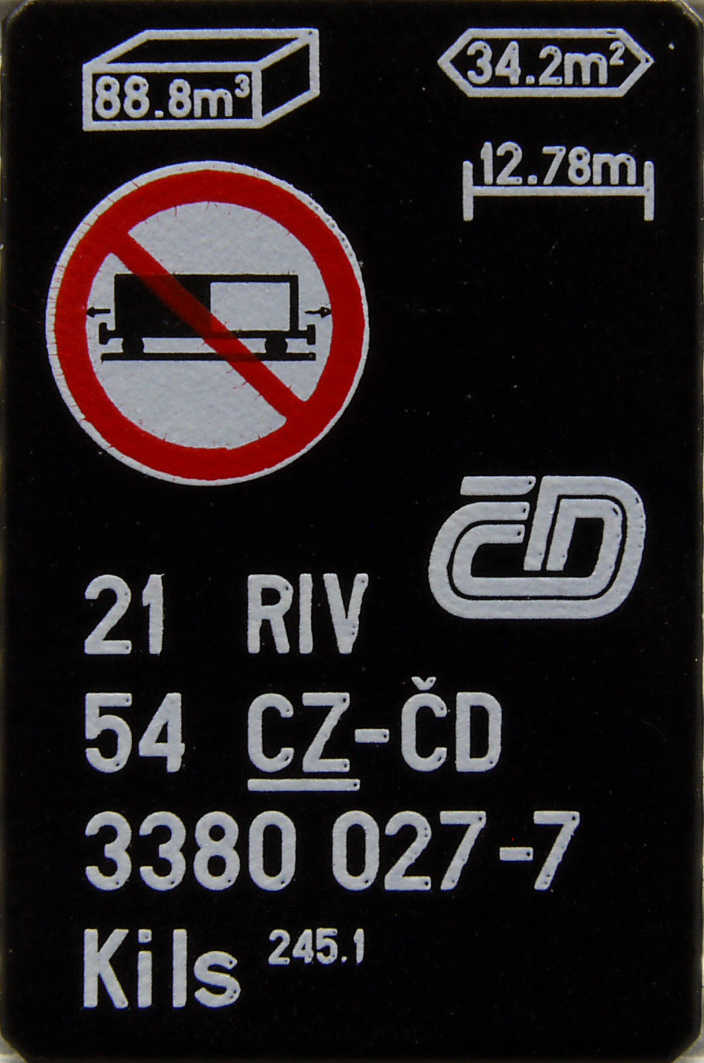 | • 21 54 3380 027-7 | → | nákladní, nezávislé nápravy, pevný rozchod, ve vlastnictví železniční správy, RIV, PPV |