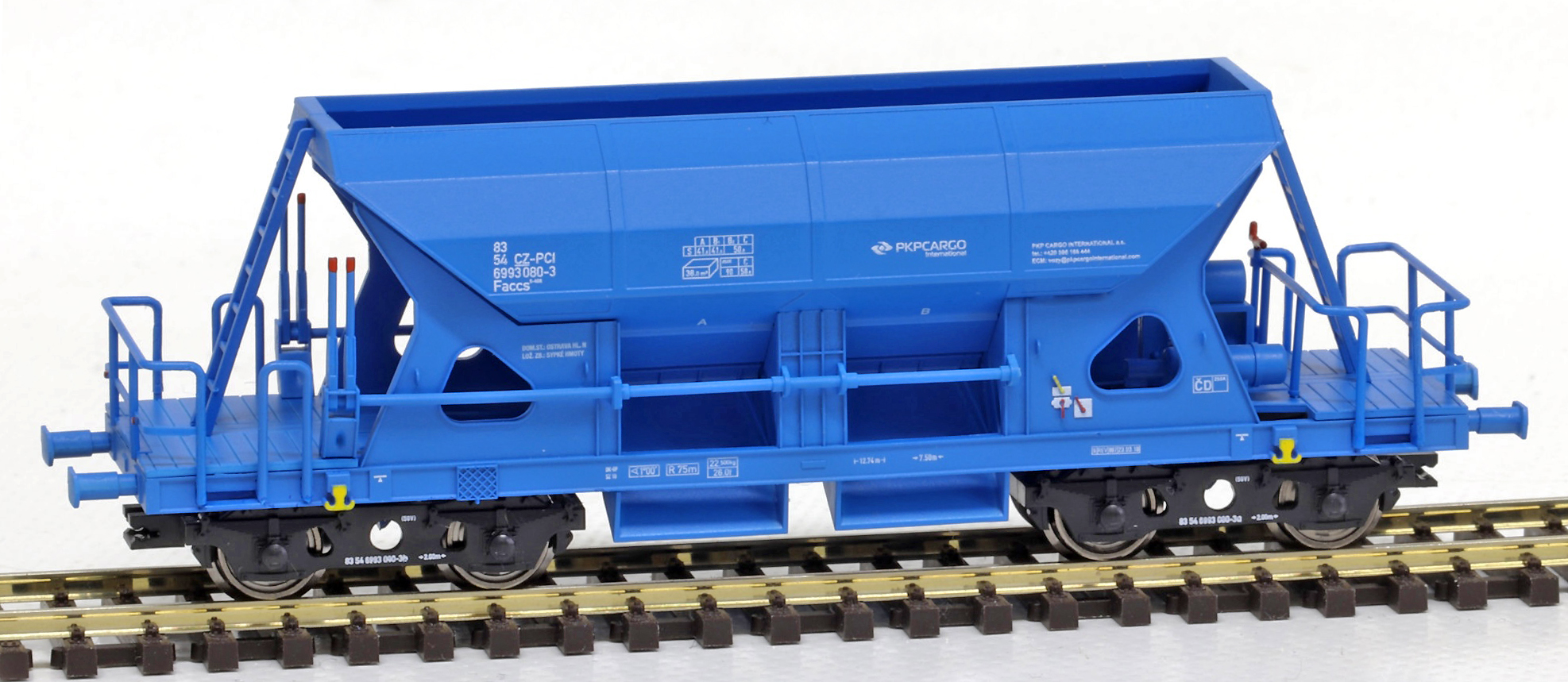 měřítko 1:120 - rozchod kolejí 12 mm kinematika krátkého spřáhla (KKK) podle normy NEM 358 108 mm - celková délka modelu přes nárazníky 4 - celkový počet náprav nebo rozložení náprav 31 g - hmotnost netto - pouze model