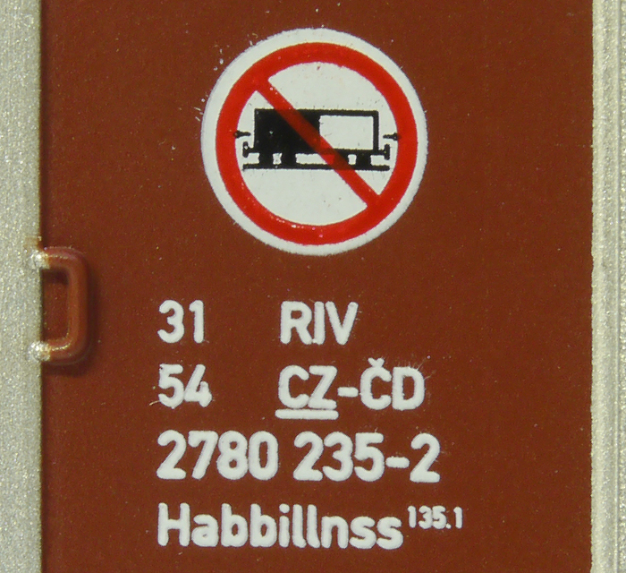 | • 31 54 2780 235-2 | → | nákladní, s podvozky, pevný rozchod, ve vlastnictví železniční správy, RIV, PPV |
