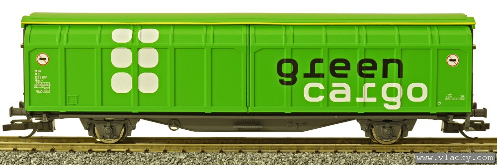 Popis   nákladní vůz s posuvnými bočnicemi zelený "green cargo"