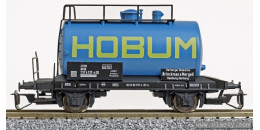 Popis   modrá se žlutým nápisem "HOBUM"