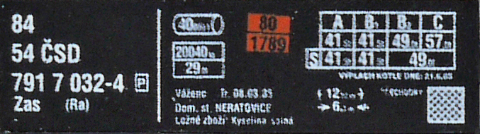 | • 84 54 791 7 032-4 | → | Z - kotlový (cisternový) vůz |