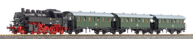 | set parní lokomotivy BR 86 a tří osobních vozů |