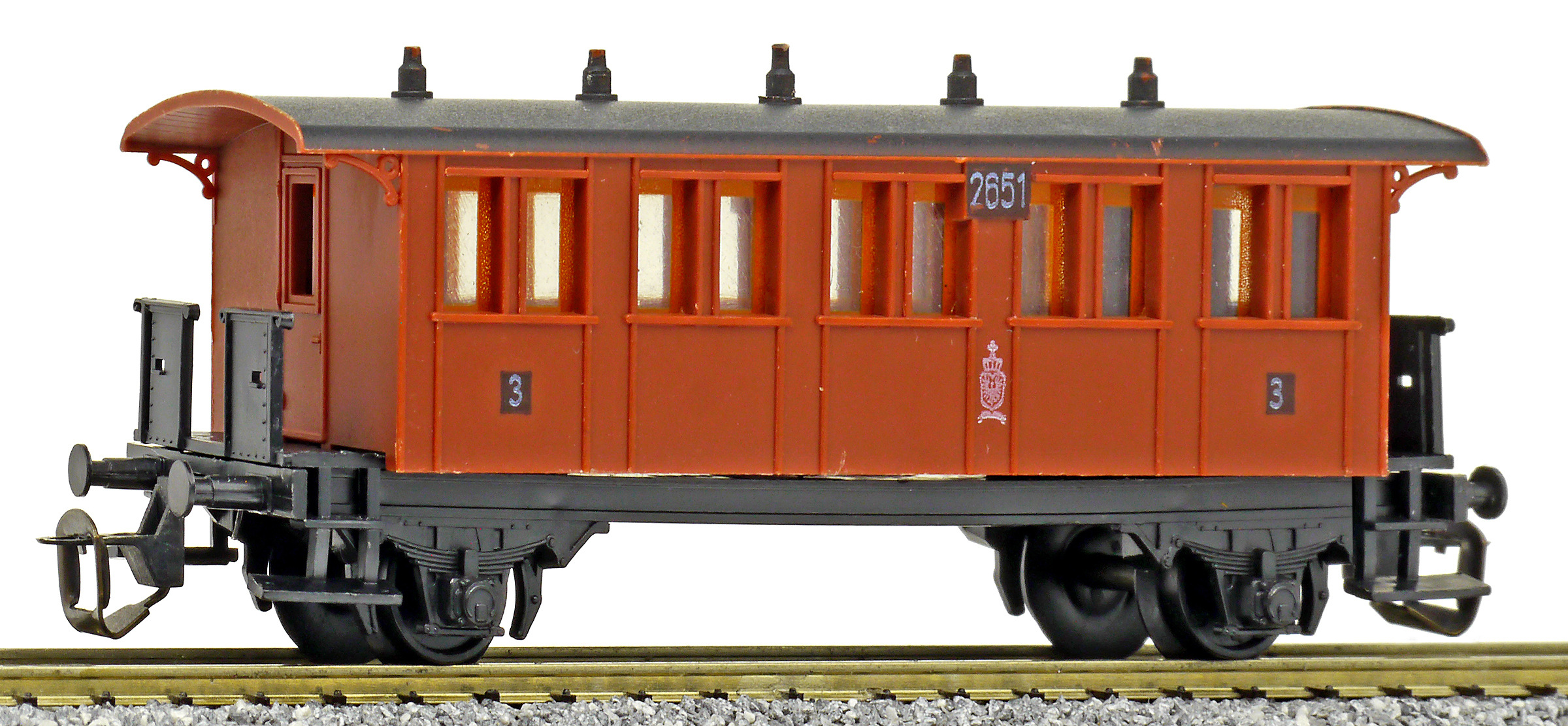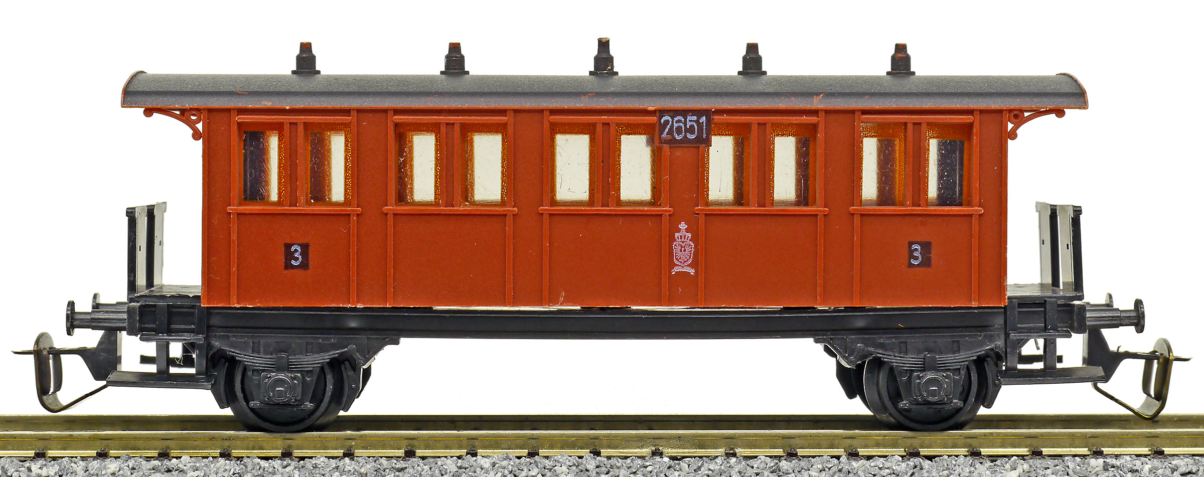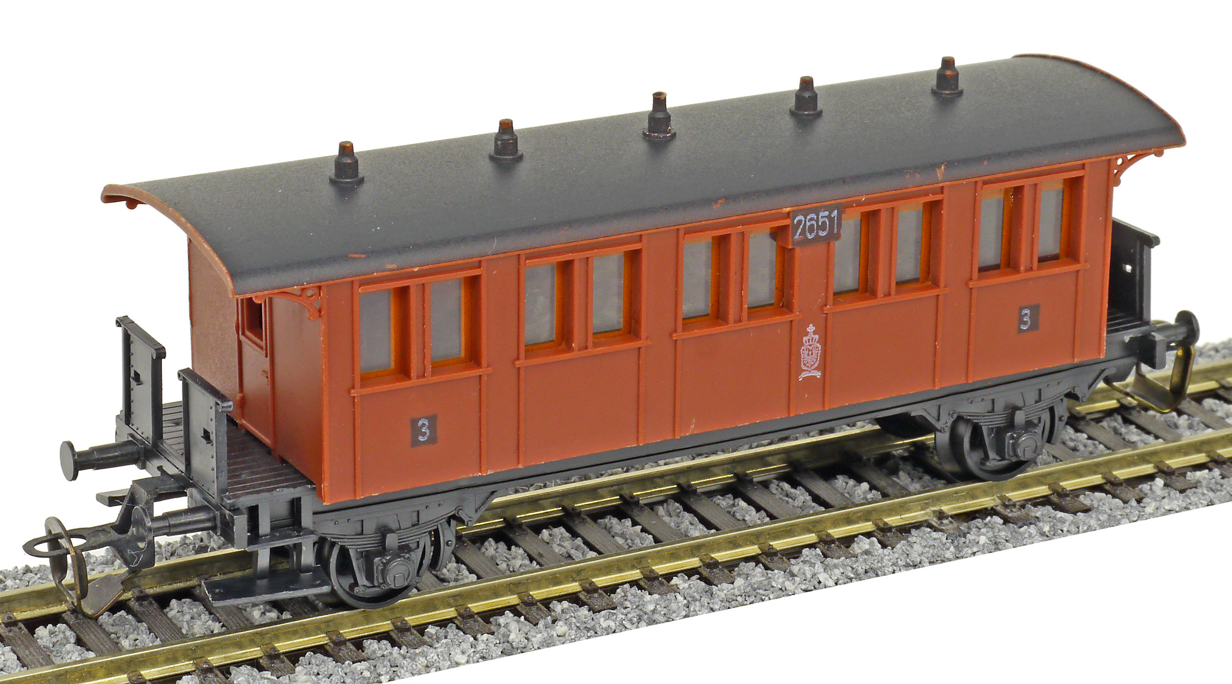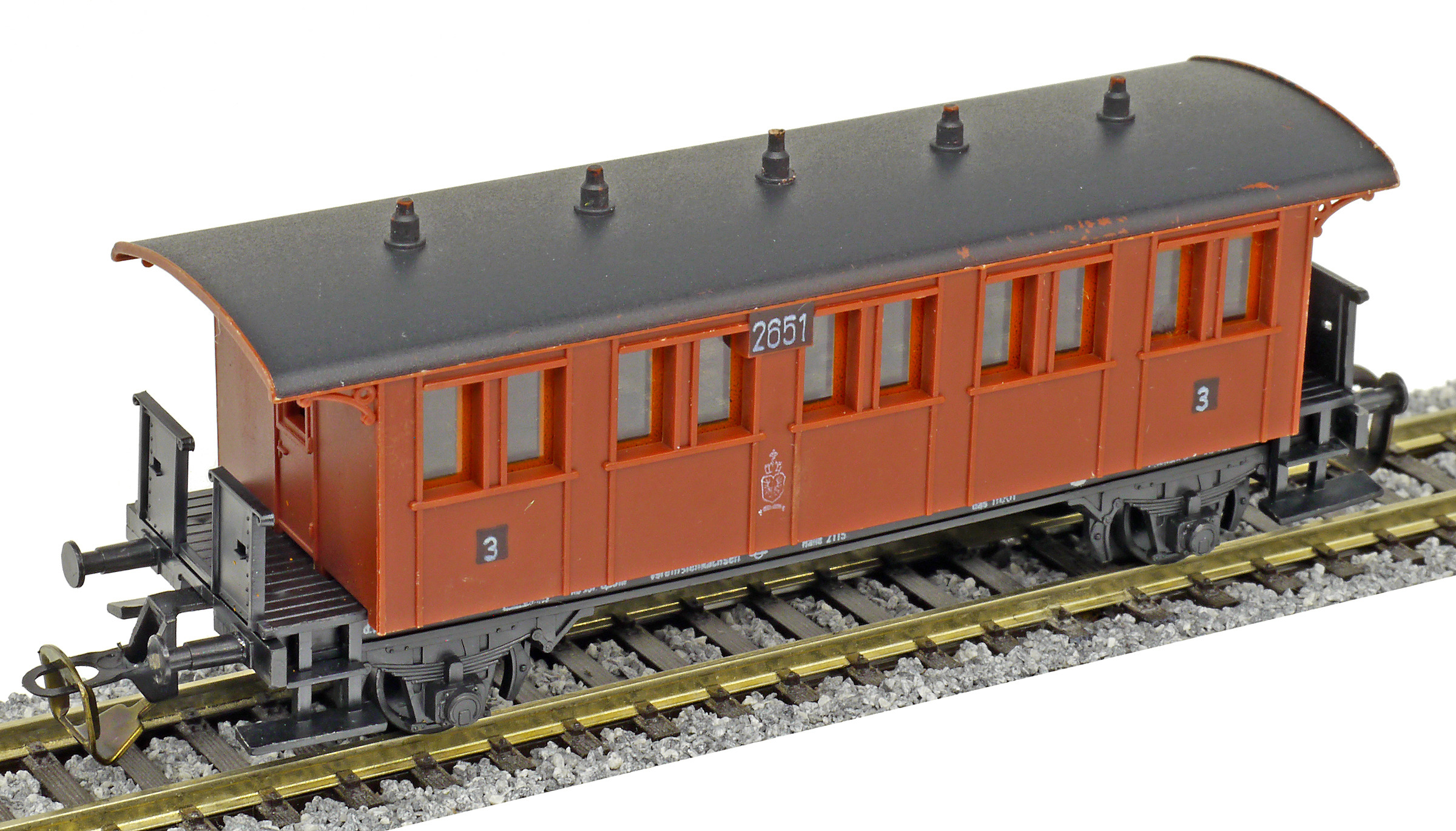 | osobní vůz červený s černou střechou 3. tř. |