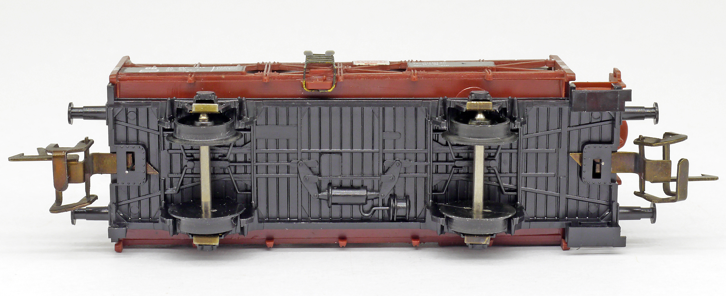 | nákladní vůz na přepravu kyselin červenohnědý s brzdařskou budkou |