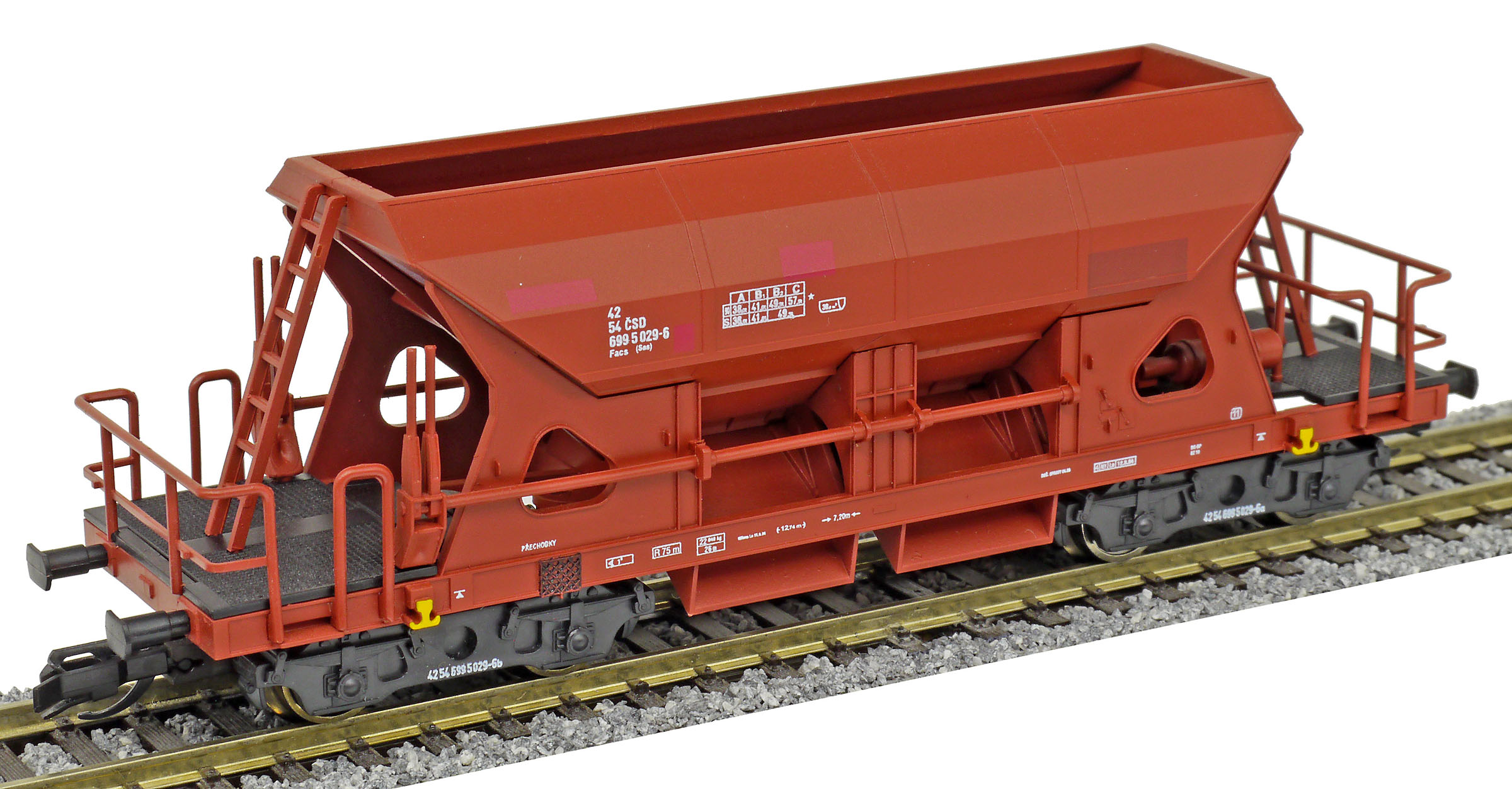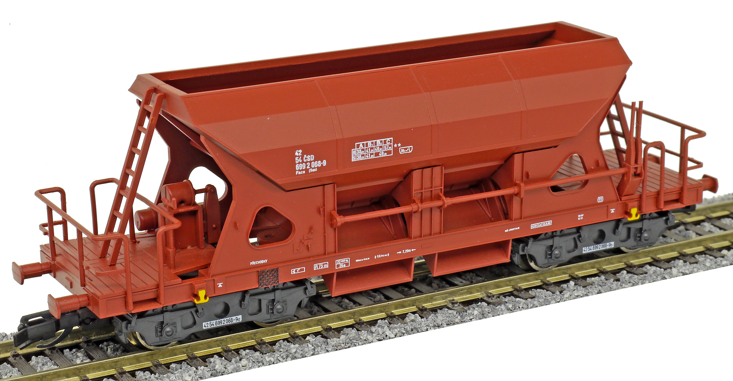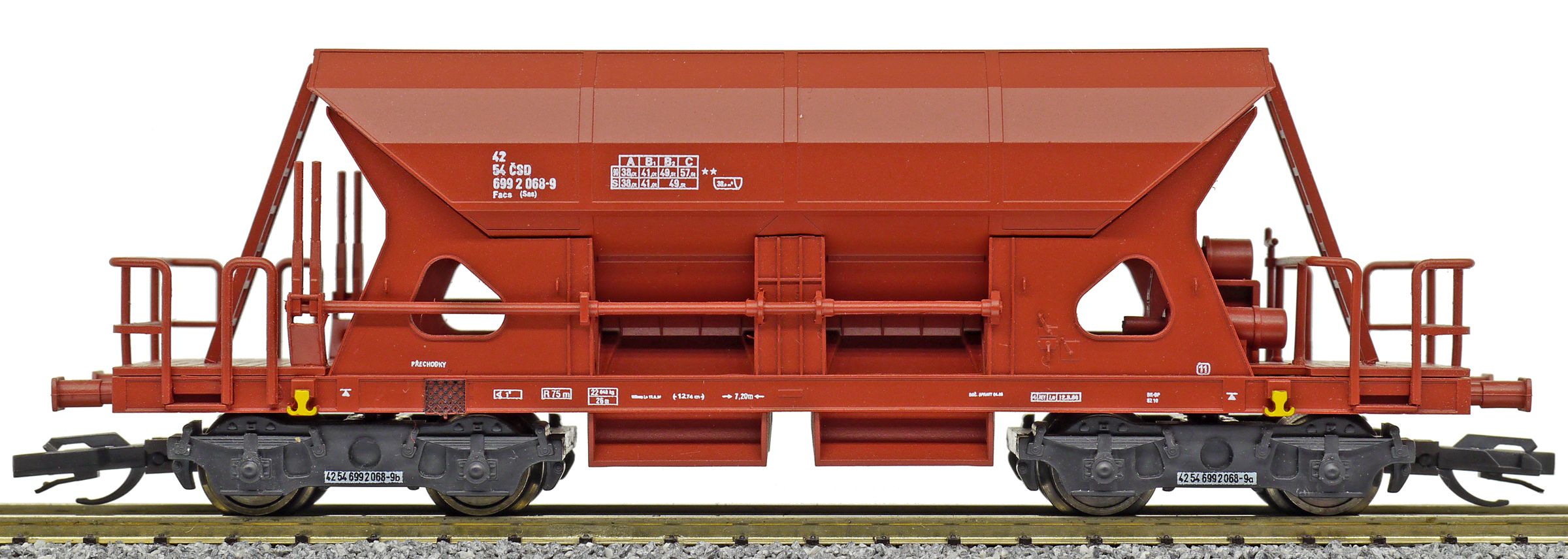 měřítko 1:120 - rozchod kolejí 12 mm kinematika krátkého spřáhla (KKK) podle normy NEM 358 5x106 mm - celková délka modelu přes nárazníky 5x4 - celkový počet náprav nebo rozložení náprav