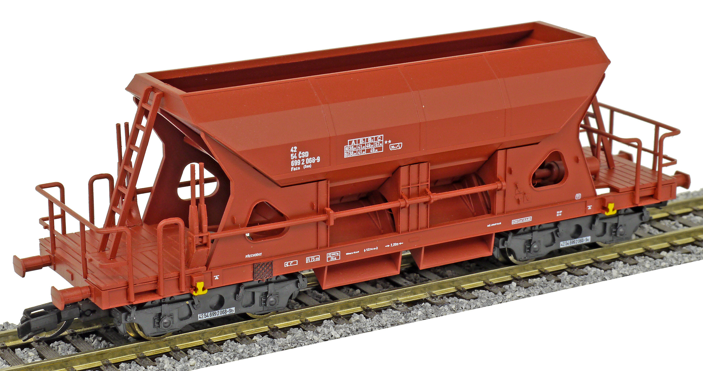 | nákladní samovýsypný vůz červenohnědý s černými plošinami |