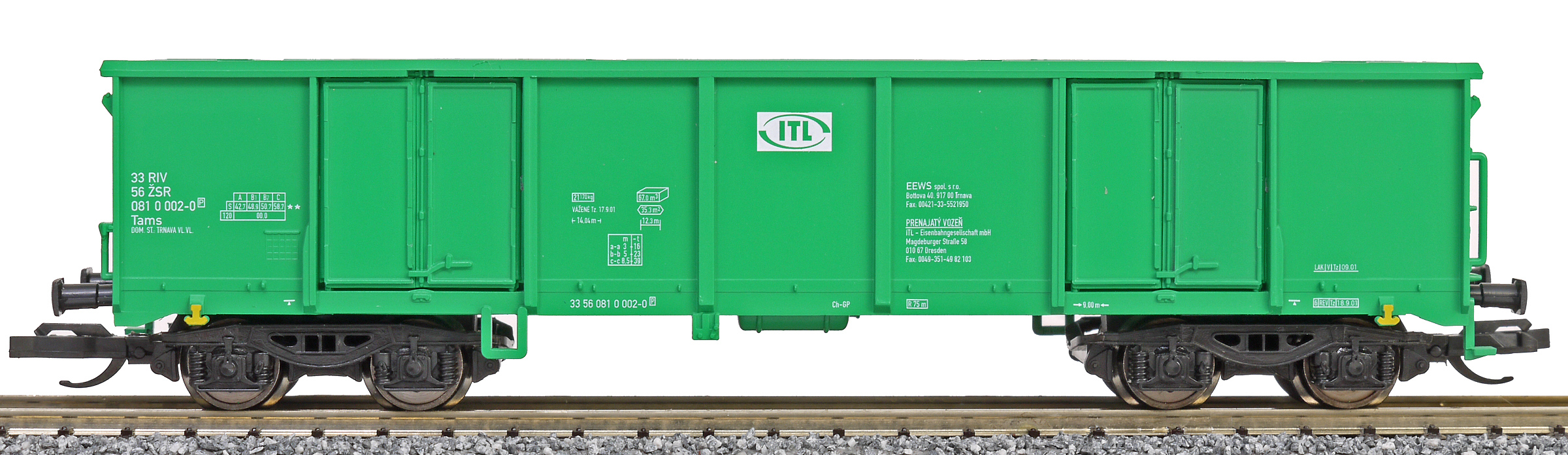 | vysokostěnný nákladní vůz zelený s logem „ITL“ |