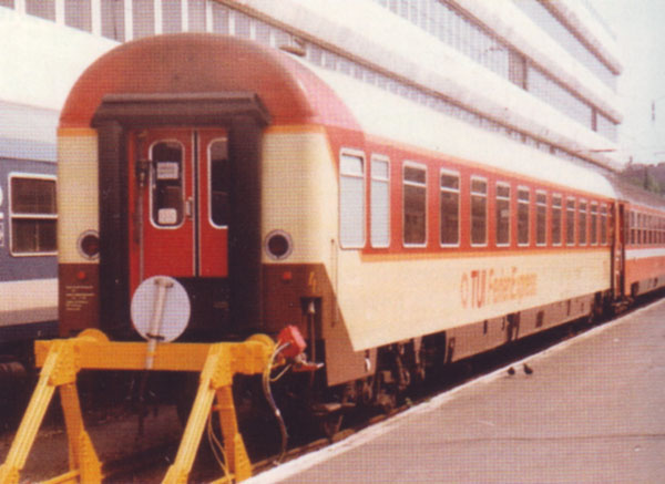 | červený-slonová kost-béžový lehátkový vůz "TUI Ferien Express" |