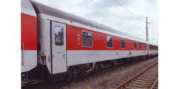 | červený-bílý s šedou střechou lehátkový vůz "City Night Line" |