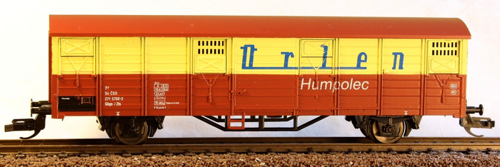| krytý nákladní vůz hnědý-krémový „Orlen Humpolec“ |