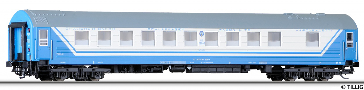 Popis   lůžkový vůz modrý-bílý s šedou střechou