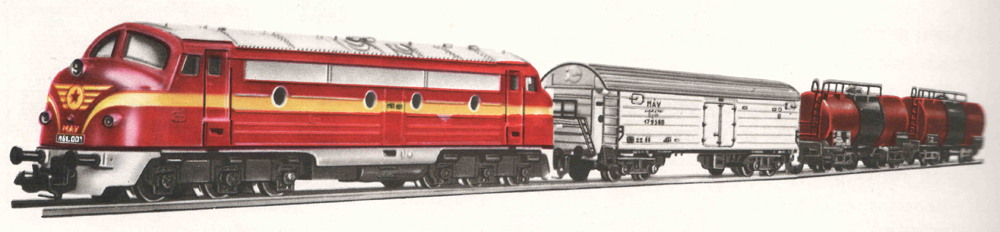 | set dieselové lokomotivy M 61 a tří nákladních vozů |