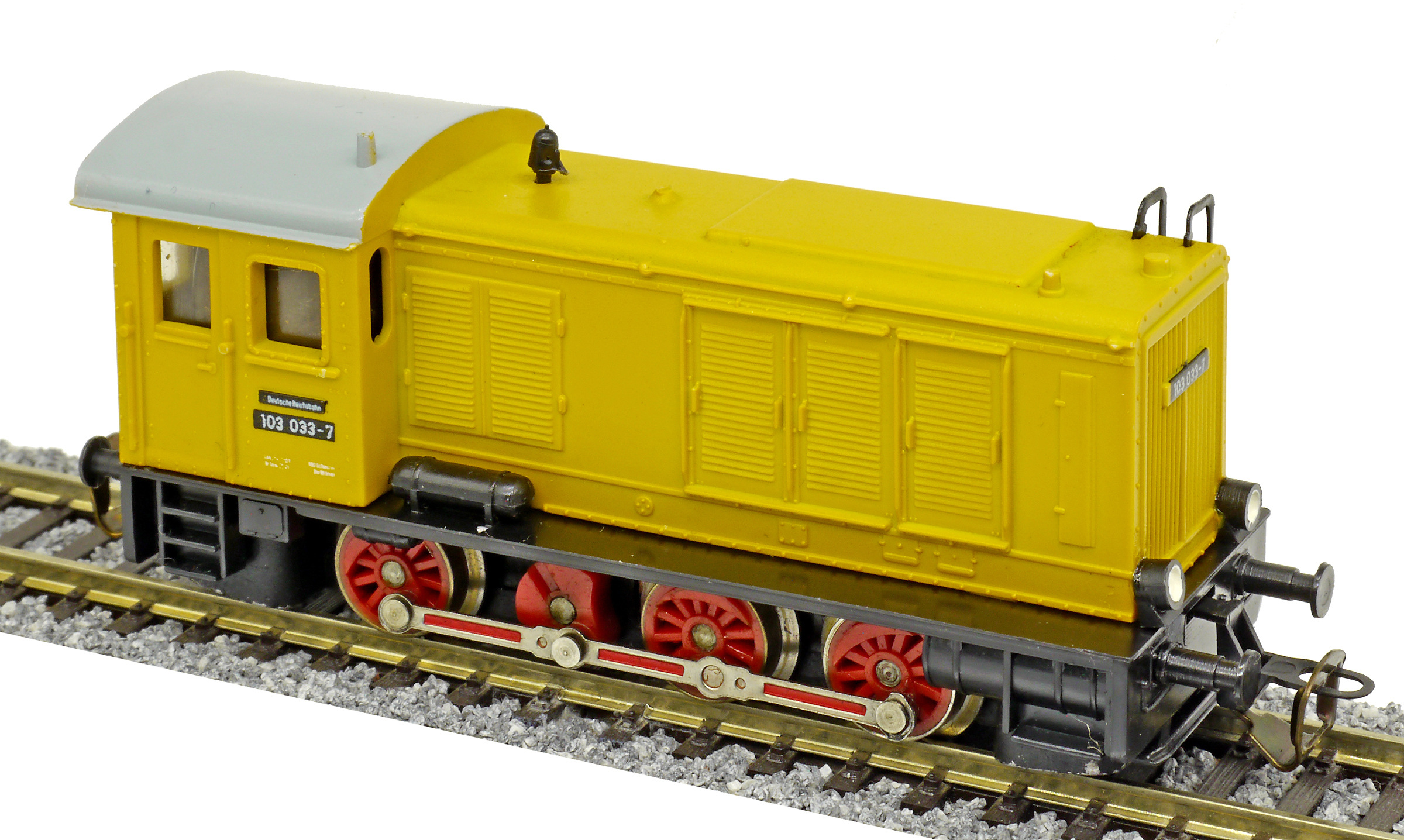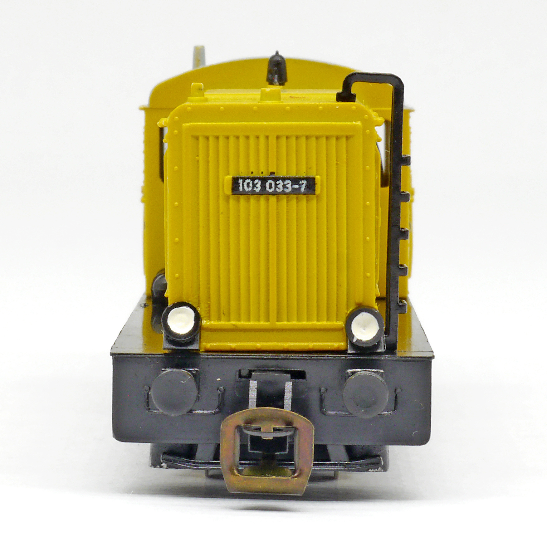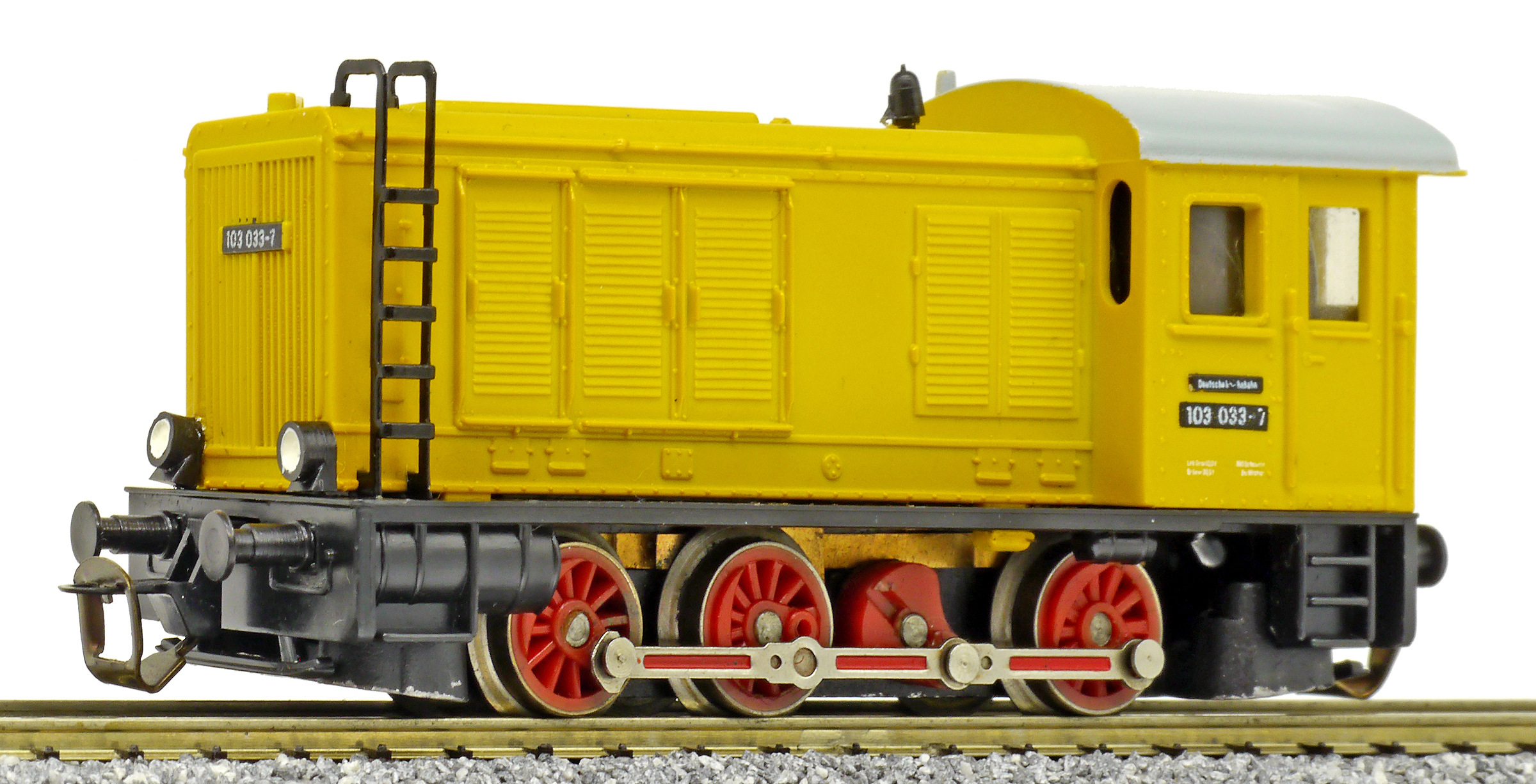 Popis   dieselová lokomotiva žlutá s černým rámem a červenými koly