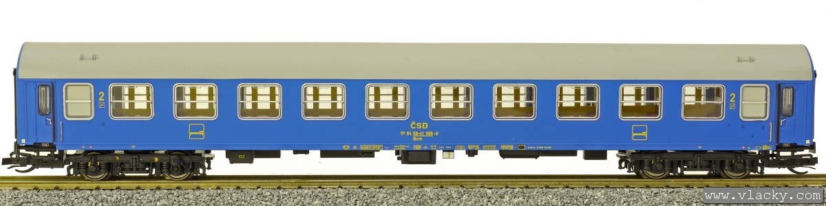 | lůžkový vůz modrý s šedou střechou |