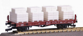 | set čtyř plošinových vozů (ex Villach) s nákladem betonových bloků |
