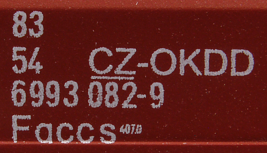 | • 83 54 6993 082-9 | → | nákladní, s podvozky, soukromý vůz, pro mezinárodní dopravu dle zvláštních úmluv |