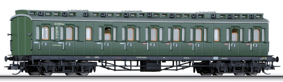 | oddílový osobní vůz zelený s tmavě šedou střechou 3. tř. |